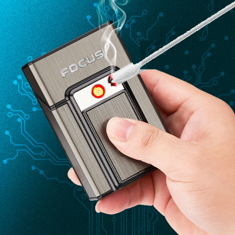 Кейс із вбудованою USB-запальничкою — це стильний та функціональний девайс для тих, хто цінує сучасні технології та високу якість. Запальничка розташована на лицьовій частині кейса і прихована елегантною кришкою, виконаною у форматі слайдера. Зручний механізм дозволяє легко активувати запальничку: при відкритті кришки нагрівальний елемент миттєво розжарюється, що забезпечує швидке та надійне запалення.