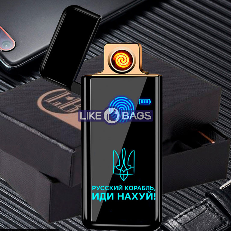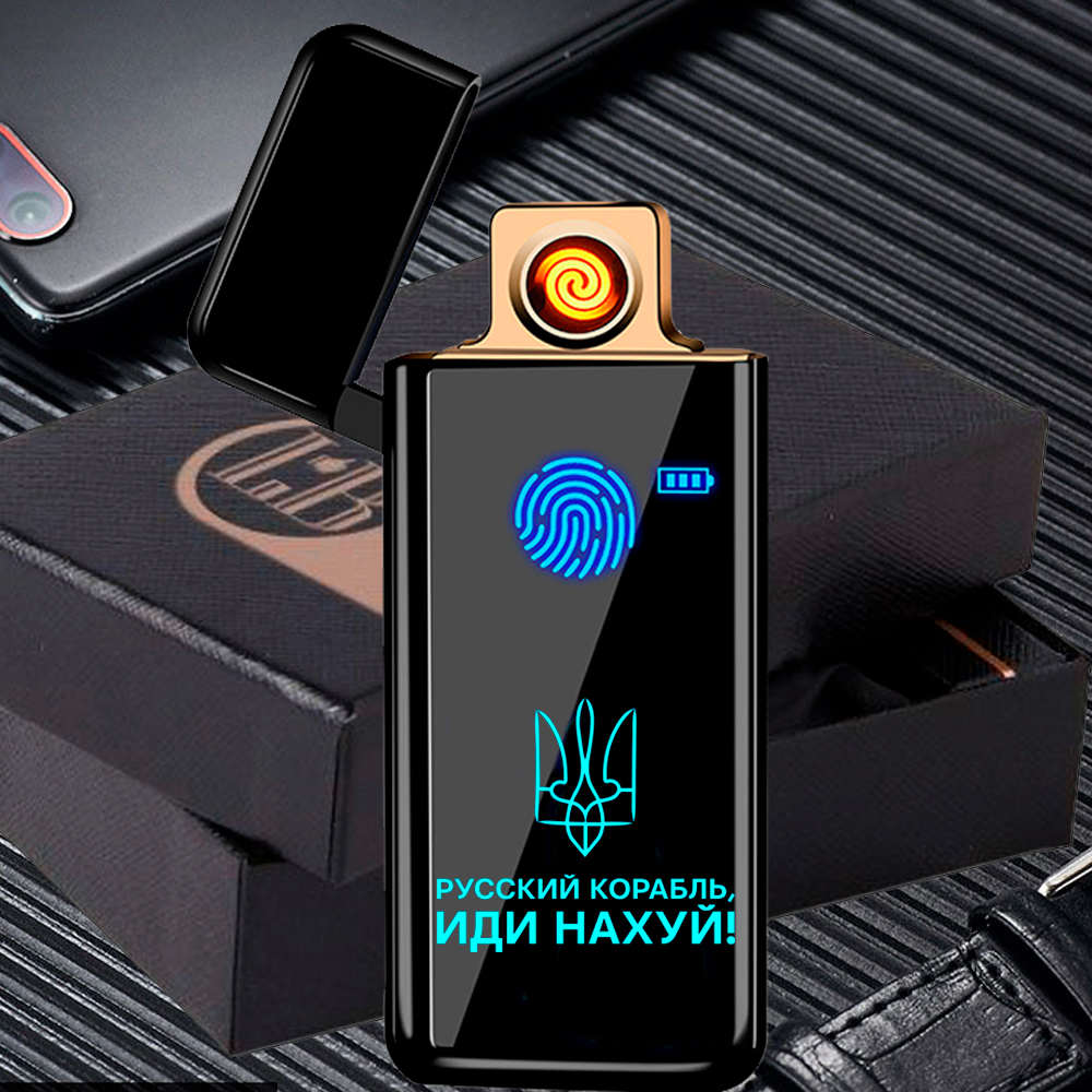 Запальничка юсб + сенсор російський корабель іди нах.. в подарунковій упаковці LB-419U1