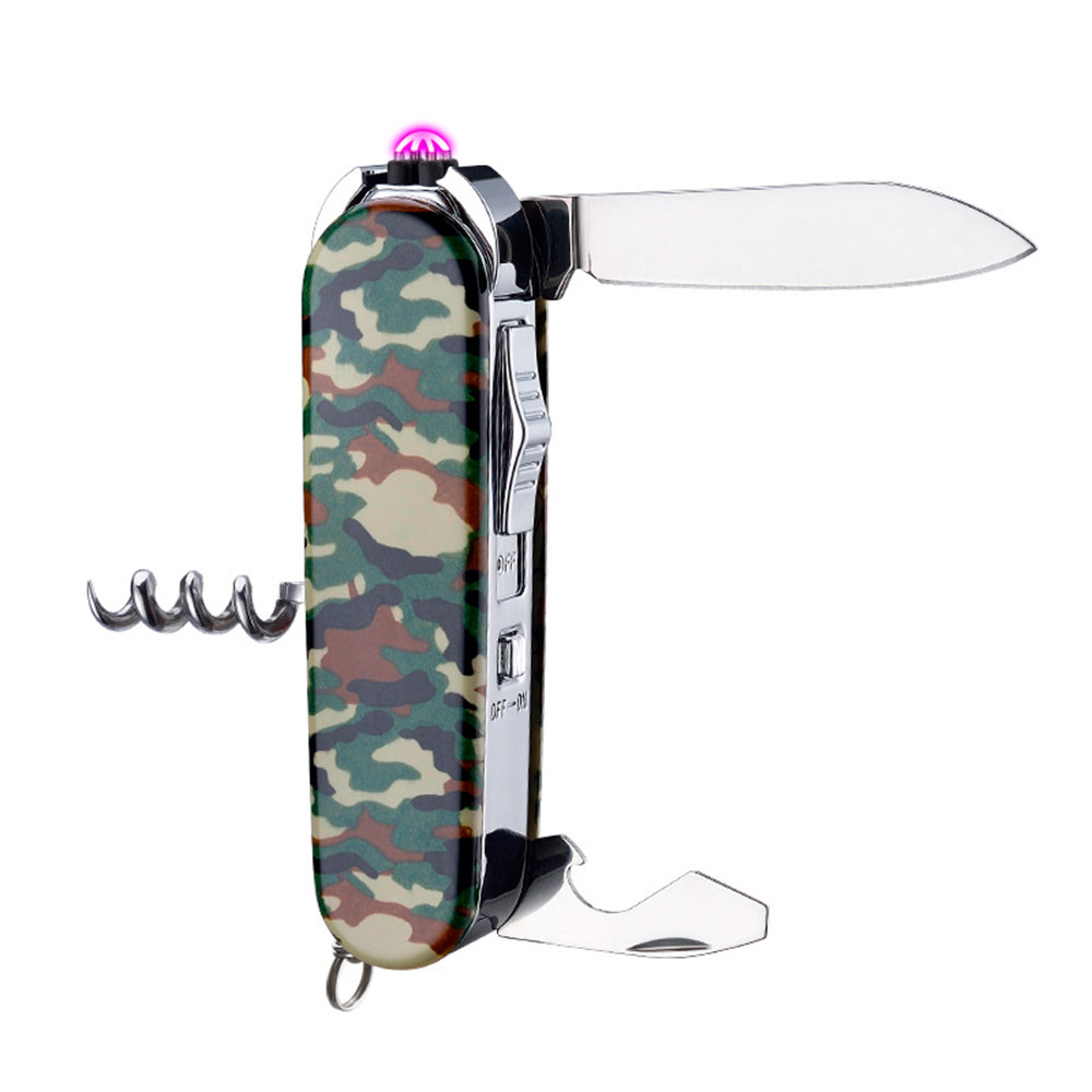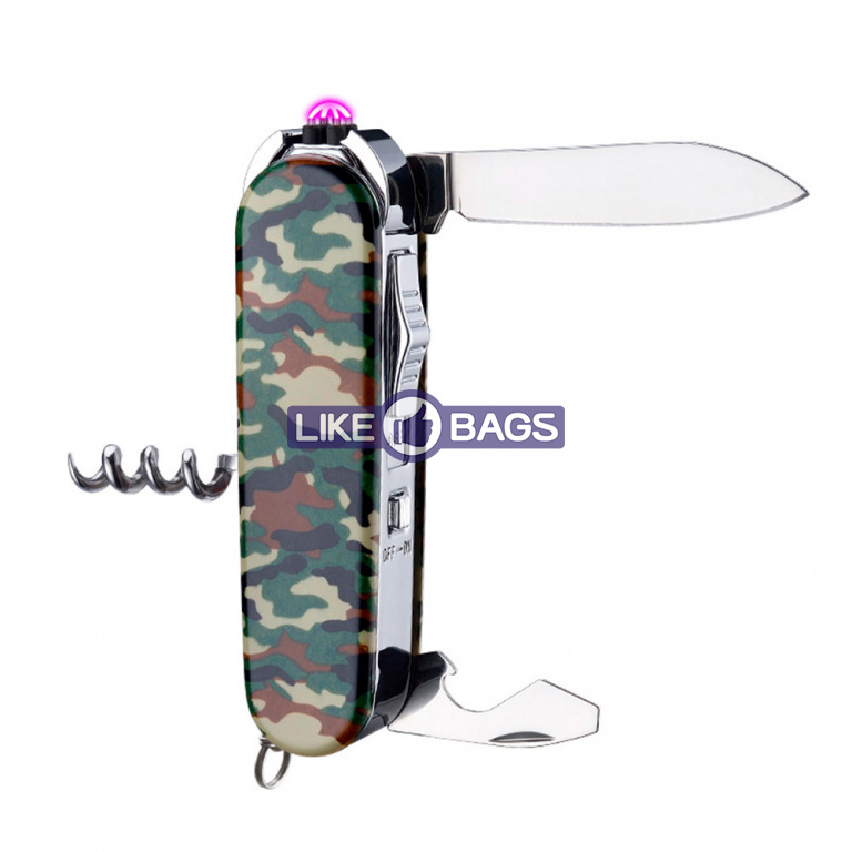 Електроімпульсна запальничка у формі швейцарського ножа — це інноваційний та багатофункціональний аксесуар, який стане надійним помічником у різних ситуаціях. Цей універсальний девайс поєднує в собі не лише функцію запальнички з електроімпульсним підпалом, але й набір корисних інструментів. Завдяки вбудованому USB-роз'єму, запальничку можна легко зарядити, а її потужний імпульсний вогонь забезпечує надійність у будь-яких умовах.