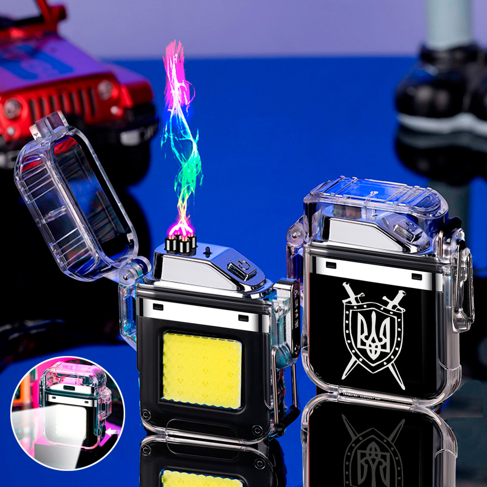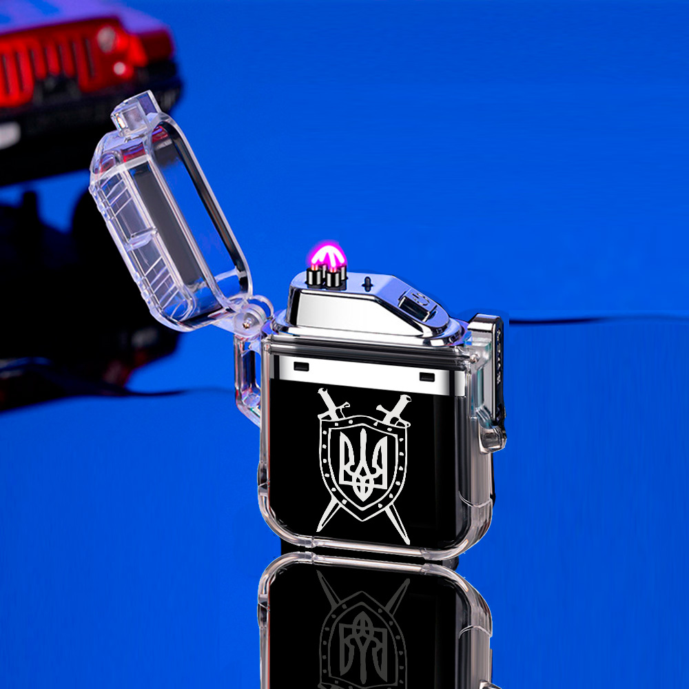 usb Запальничка 2 дуги + ліхтарик Герб України Щит з Мечами у подарунковій упаковці LB-678U3