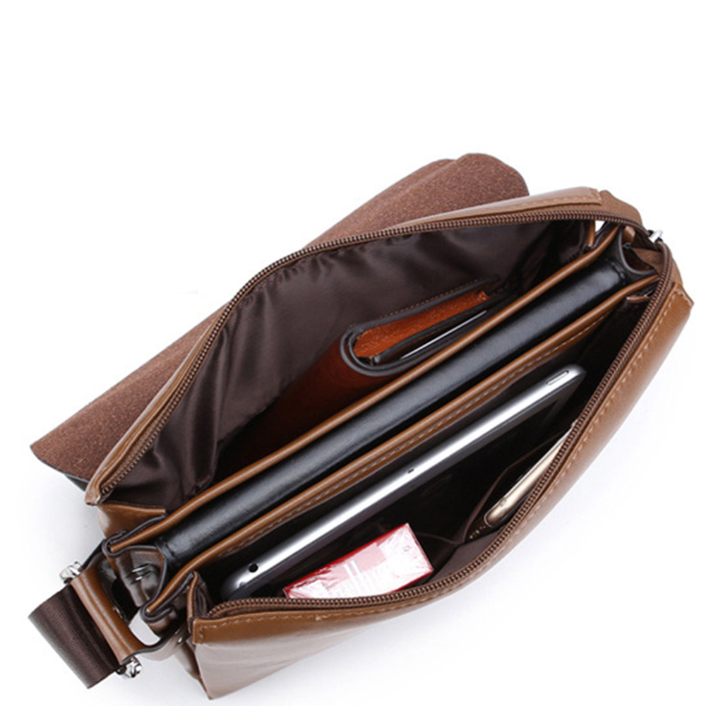 Чоловіча сумка виготовлена з високоякісної шкіри PU, додатково оброблена водовідштовхувальним покриттям.
