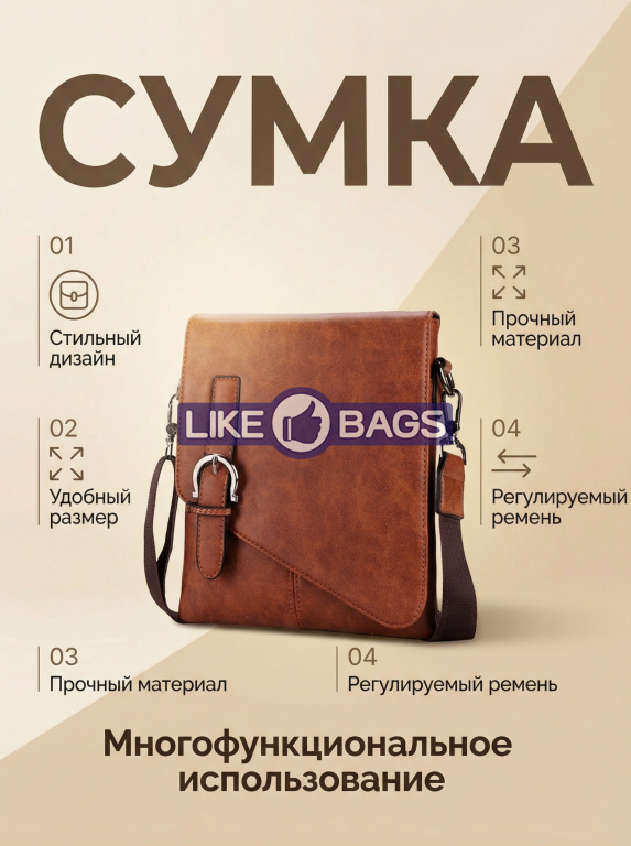 Сумка чоловіча для документів універсальна 54104 виготовлена з високоякісної шкіри PU, додатково оброблена водовідштовхувальним покриттям.