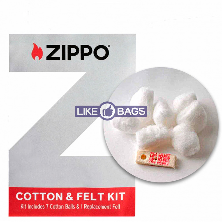 Комплект для замены хлопка и войлока Поддерживайте оптимальную работу вашей ветрозащитной зажигалки с помощью комплекта для замены хлопка и войлока от Zippo. В комплект входит достаточно впитывающей ваты для одного топливного резервуара ветрозащитной зажигалки и сменная войлочная прокладка.