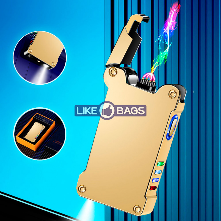 Запальничка usb 2 дуги з ліхтариком у подарунковій упаковці LB-670Gold