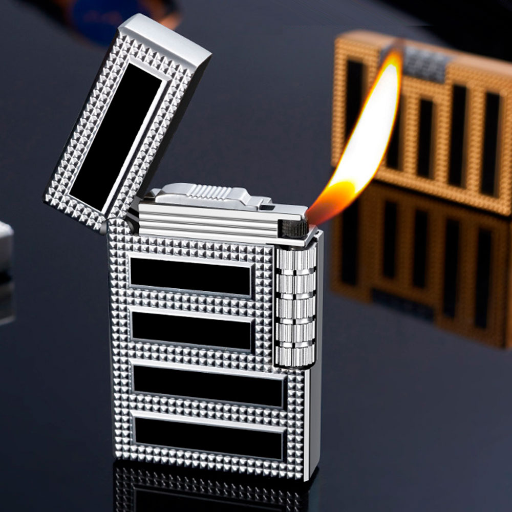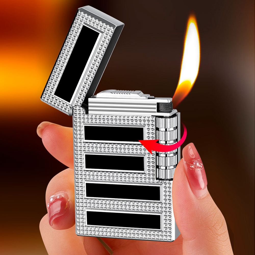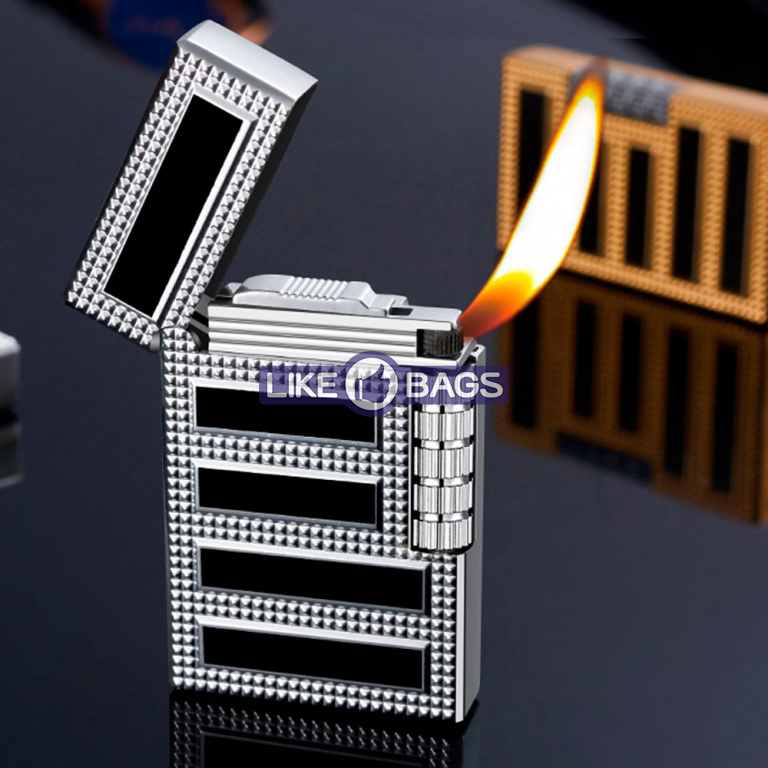 Як видно на фотографіях, A33676 є крем'яною газовою запальничкою, продумано спроектованою для збереження основних функцій і елегантності. Взагалі кажучи, всі запальнички зазвичай мають невеликий об'єм газу через те, що всередині бака використовуються пластикові матеріали, тому для зменшення обсягу газу потрібна велика товщина кожної частини. A33676 вдалося використати латунні матеріали для всіх деталей резервуара і надати гідного вигляду високоякісного світлового приладу з ідеальним відчуттям і вагою. Ви будете задоволені, коли дійсно торкнетеся продукту і відчуєте «клацання». Широке огранювання в кутку спереду робить цю крем'яну запальничку ще привабливішою.