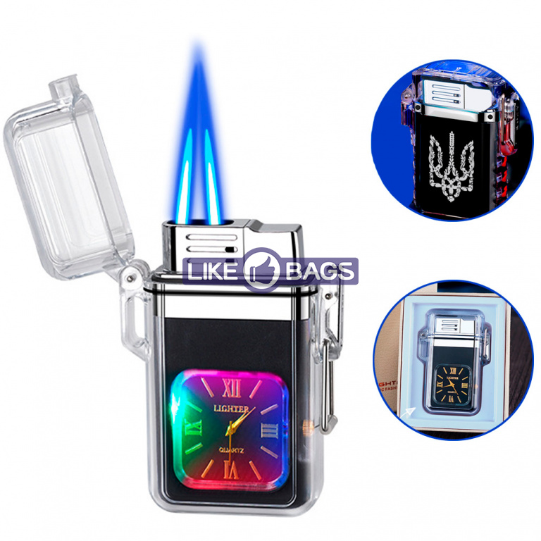 Запальничка герб України два полум'я + водонепроникний + годинник у подарунковій упаковці LB-723U1