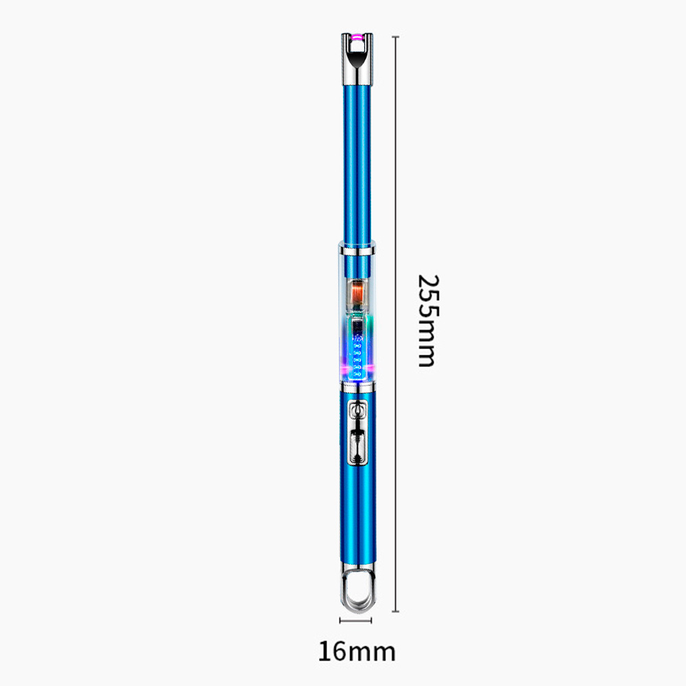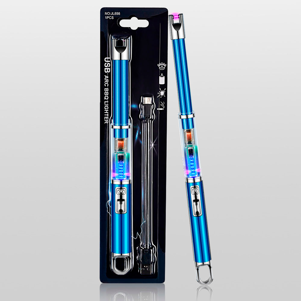 Імпульсна запальничка Lumin LB-809C — це зручний і безпечний інструмент для дому, кухні, дачі, кемпінгу та повсякденного використання. Модель має яскравий синій корпус із прозорими декоративними вставками, які підсвічуються LED-діодами під час активації, додаючи сучасного вигляду. Запальничка працює на основі електроімпульсної технології, що дозволяє створювати іскру між контактами без використання газу або відкритого вогню. Така технологія забезпечує захист від вітру та вологи, а також є більш безпечною в побуті. Подовжений корпус дозволяє легко підпалювати свічки, газові плити, каміни, гриль тощо. Зарядка здійснюється через USB-кабель, який постачається в комплекті. Пристрій багаторазовий і екологічно безпечний — чудова альтернатива одноразовим засобам. Lumin LB-809C — це стильна, практична та сучасна USB запальничка, яка стане незамінним аксесуаром у будь-якому домі чи в подорожах.