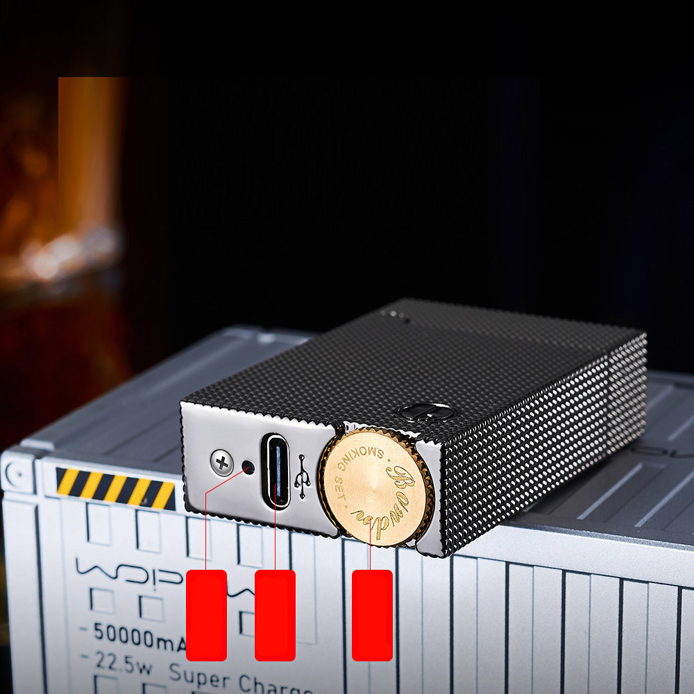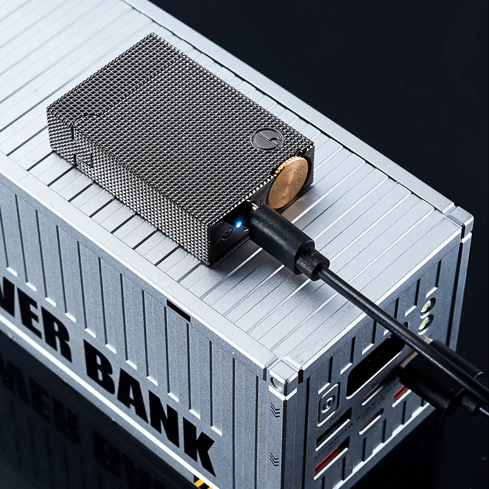 Запальничка має вбудований акумулятор і заряджається через USB-кабель, який входить до комплекту. Незважаючи на наявність електроніки, конструкція залишається міцною, надійною та приємною у користуванні.
