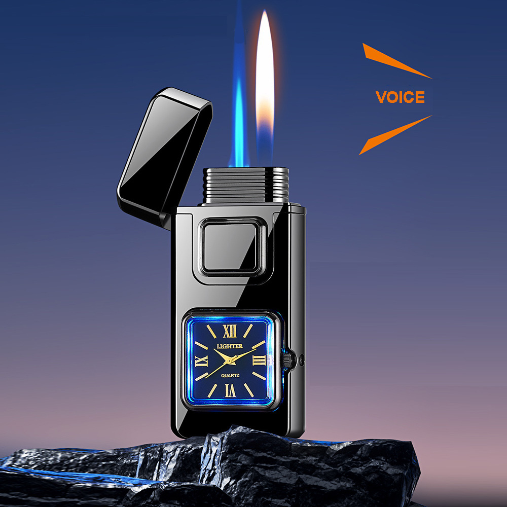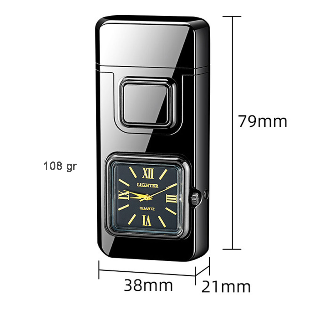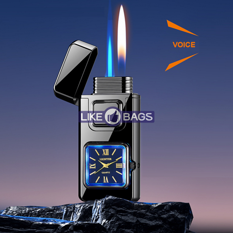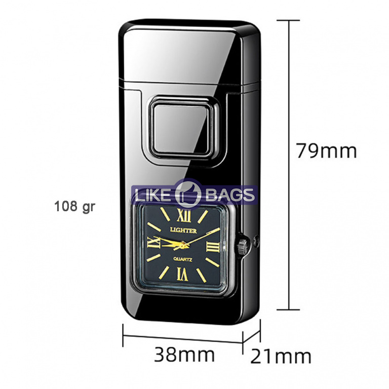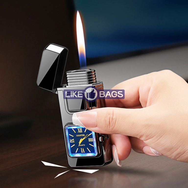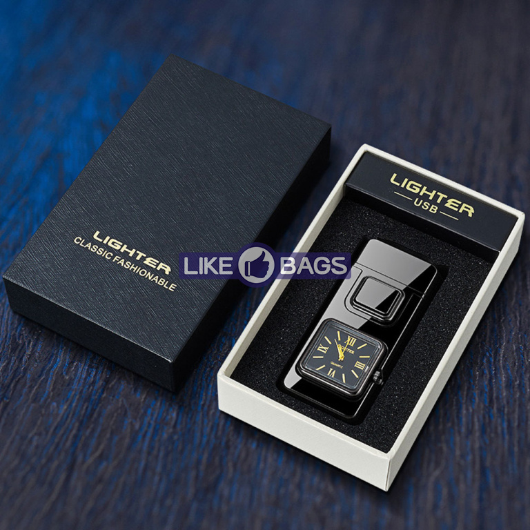 На фронтальній частині корпусу розміщено аналоговий годинник квадратної форми, який додає запальничці оригінальності та робить її не лише практичним, а й естетично привабливим аксесуаром. Це поєднання функцій і стилю, що привертає увагу з першого погляду.