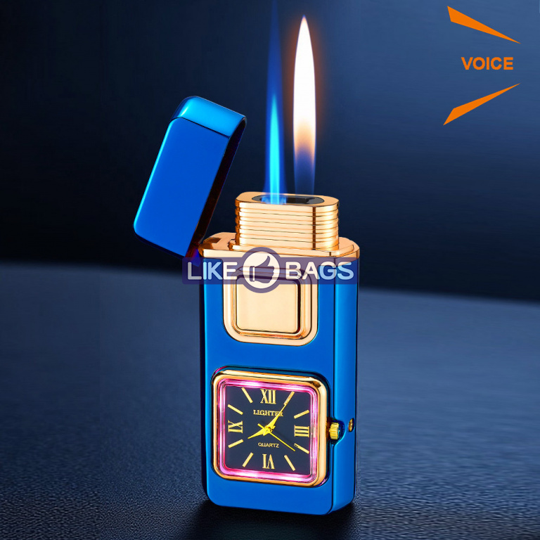 Запальничка ChronoFire LB-826C у синьому кольорі з вишуканими золотими акцентами — це поєднання сучасних технологій і витонченого дизайну. Золота сенсорна панель та обідок навколо годинника гармонійно контрастують із глибоким синім відтінком корпусу, створюючи ефект елегантності та преміального стилю.