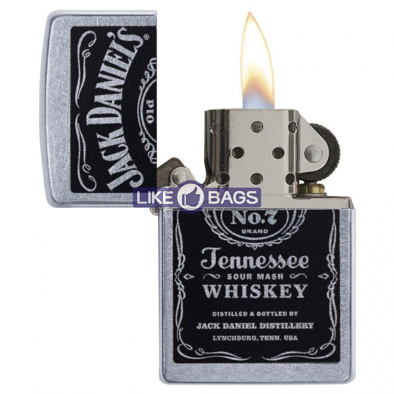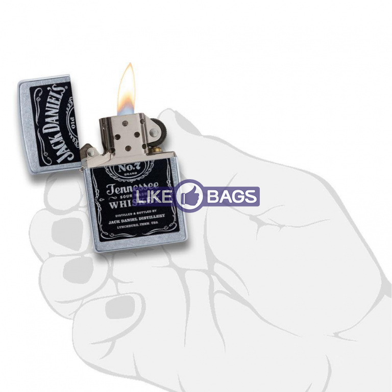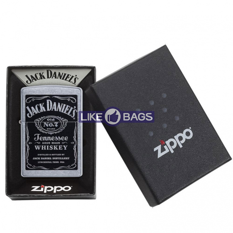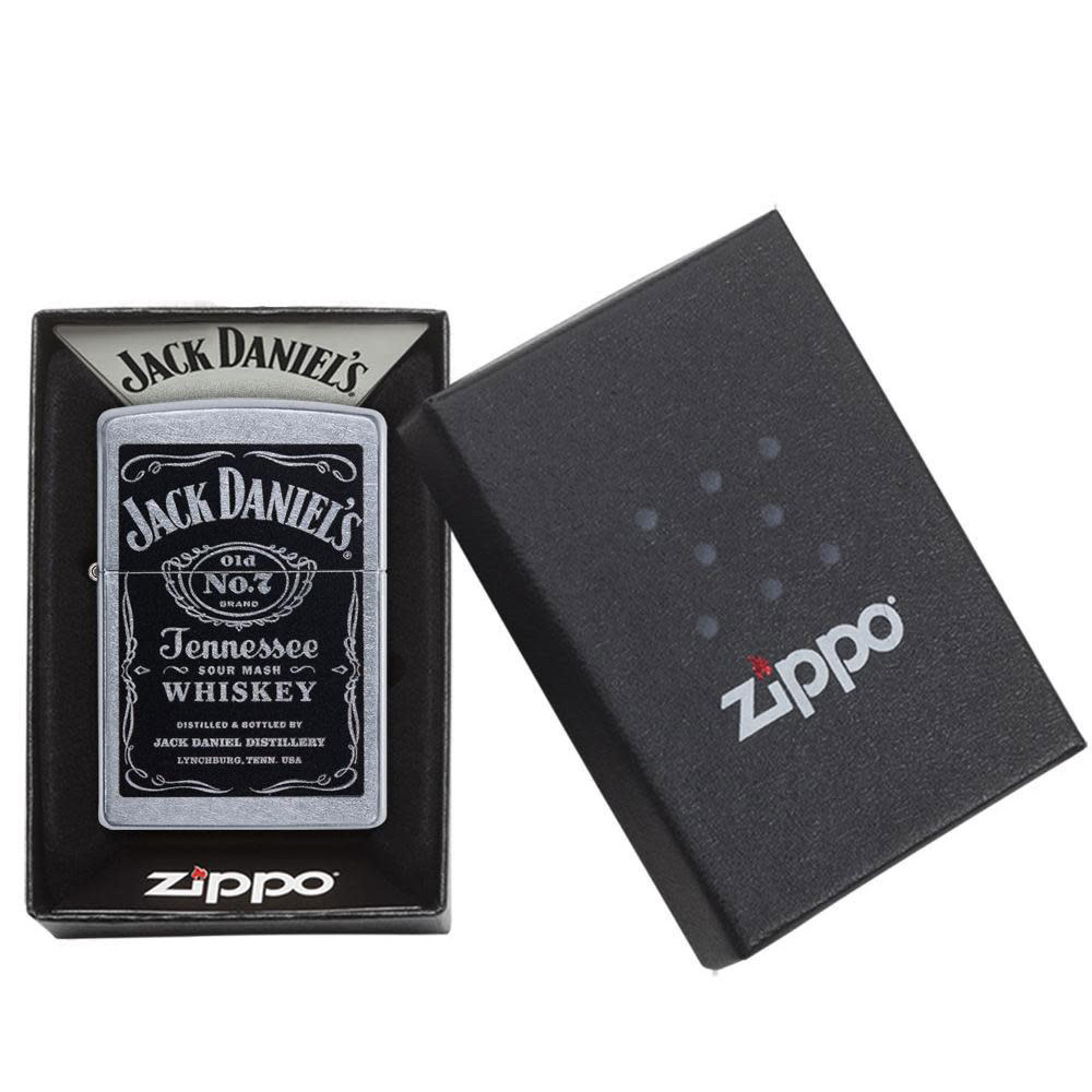 На цій вітрильній запальничці Street Chrome™ зображено колір етикетки Jack Daniel's®. Постачається упакованим у подарункову коробку. Для оптимальної роботи заправляйте бензином для запальничок Zippo.
