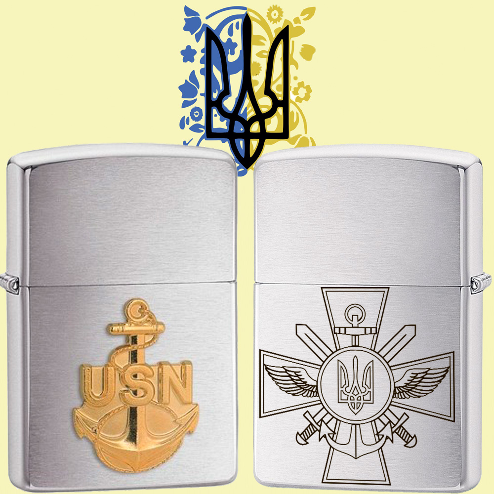 Запальничка Zippo "ЗСУ" Brushed Chrome використовує унікальну техніку горизонтального брашування, яка створює тонку горизонтальну текстуру на лицьовій та зворотній сторонах моделі. Сторони запальнички відполіровані до блиску додаткового розмаїття. Оздоблення Brushed Chrome було створено у 1933 році і досі залишається найпопулярнішою запальничкою Zippo.