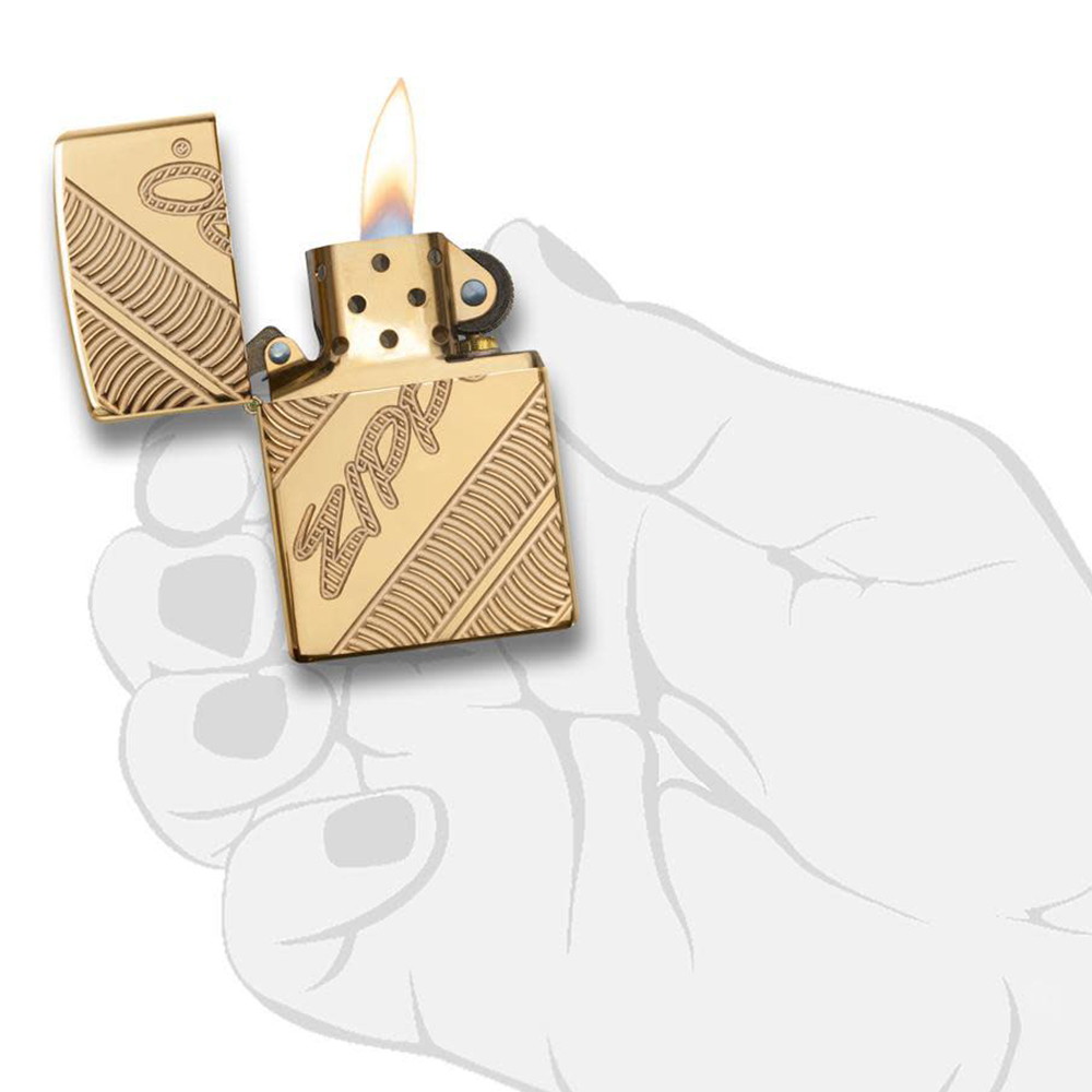 Представляємо вишукану бензинову запальничку Zippo Armor® High Polish Brass, що відрізняється глибоким гравіюванням, яке створює сліпучі грані. Цей витончений аксесуар втілює мистецтво і майстерність, пропонуючи красивий дизайн котушки, який надає об'ємний вигляд поверхні. Завдяки своїй унікальній текстурі та блискучому покриттю запальничка привертає увагу і захоплює своєю пишністю. На передній поверхні запальнички красується чудовий вінтажний логотип Zippo, що підкреслює її елегантність та зв'язок з історією легендарного бренду. Ця деталь надає запальничці особливу харизму і робить її не просто функціональним предметом, а й справжнім витвором мистецтва. Бензинова запальничка Zippo Armor® High Polish Brass поставляється в стильній подарунковій упаковці, що робить її ідеальним вибором для будь-якого випадку. Її довговічність та надійність забезпечують зручність у використанні, а ефектний дизайн додає нотку розкоші та вишуканості у повсякденне життя. Кожна деталь цієї запальнички відображає прагнення Zippo до досконалості та якості. Чудово підходить для колекціонерів і цінителів стильних аксесуарів, ця запальничка стане вашим незамінним супутником, вирізняючись своїм елегантним зовнішнім виглядом та надійністю. Насолоджуйтеся найвищою якістю та унікальним дизайном, які зробили бренд Zippo символом вишуканості та майстерності.