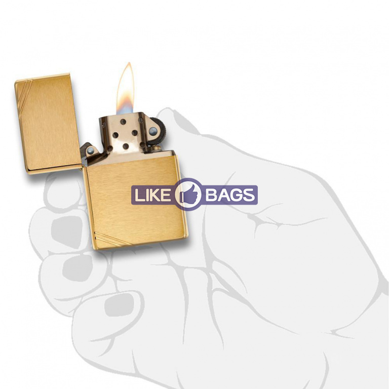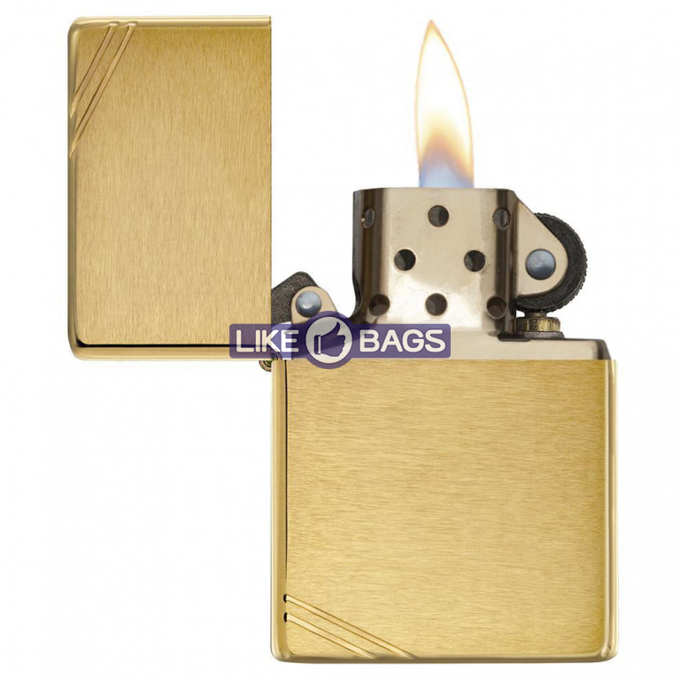 Класична запальничка Zippo золотого кольору із похилими насічками по кутах - стильний аксесуар для людини зі смаком. Запальничка продається не заправленою.