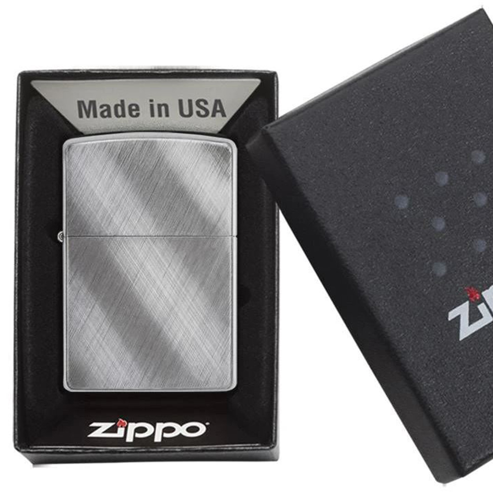 Представляємо вашій увазі бензинову запальничку Zippo, яка привносить свіжий погляд на класичне матове хромоване оздоблення. Спрямоване чищення створює унікальні візерунки, надаючи цій запальничці новий, інноваційний вигляд, зберігаючи при цьому вишуканість та привабливість традиційного матового хрому. На особливу увагу заслуговує малюнок діагонального переплетення на корпусі запальнички. Цей креативний дизайн створює враження діагональних смуг, які плавно переходять від темних відтінків до світлих, додаючи запальнички елегантності та інтриги. Кожна запальничка поставляється у стильній подарунковій коробці, що робить її ідеальним подарунком для особливих моментів у житті ваших близьких чи друзів. Завдяки високій якості матеріалів та ретельній обробці, ця запальничка буде служити надійним супутником на багато років. Бензинова запальничка Zippo із спрямованим чищенням та малюнком діагонального переплетення – це не просто аксесуар, але й вираз вашого індивідуального стилю та смаку. Вона стане незамінним компаньйоном у повсякденному житті, надаючи вашому образу неповторного шарму та вишуканості.