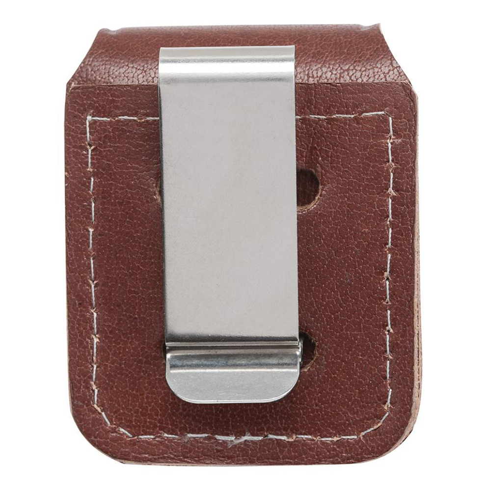 Чохол для запальничок Zippo з натуральної шкіри має стильний дизайн, але легко доступний. Особливості цієї сумки для запальничок включають чорну або коричневу шкіру, а також кліпсу, яка кріпиться до будь-якого ременя, пояса або кишені і надійно утримує будь-яку запальничку Zippo. Поставляється у чорній коробці Zippo.