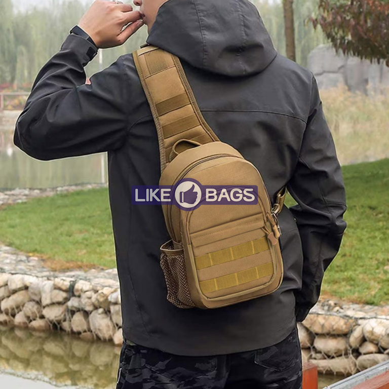 Перекидна лямка зліва направо. Багато предметів екіпірування сьогодні активно використовуються чоловіками та у повсякденному житті. Зокрема, це тактичні сумки через плече – завдяки своїй практичності та універсальності вони стають незамінним атрибутом при поїздці на полювання чи риболовлю, а також інших видах активного відпочинку. Серед інших їх переваг можна виділити: Високу міцність і водонепроникність – для їх пошиття використовуються щільні матеріали з водовідштовхувальним просоченням.