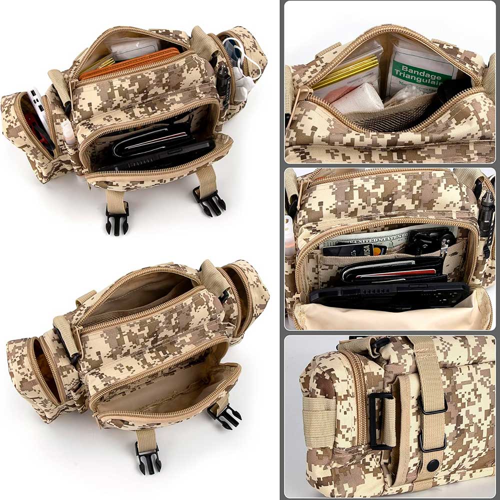 • Функціональність – однолямкова сумка камуфляж оснащена великою кількістю кишень та надійною фурнітурою, за рахунок чого ви будь-коли зможете швидко отримати доступ до потрібної речі.