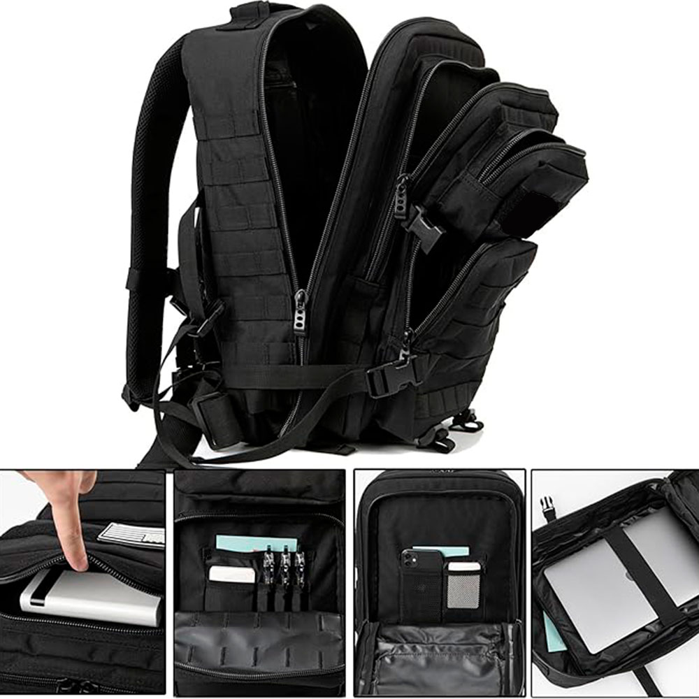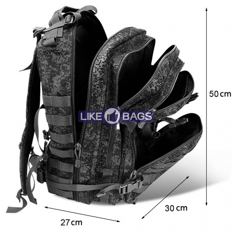 Система лямок рюкзака Molle спереду та з боків, призначена для використання в поєднанні з іншим спорядженням, ви можете прикріпити додаткові сумки або спорядження як тактичний рюкзак.