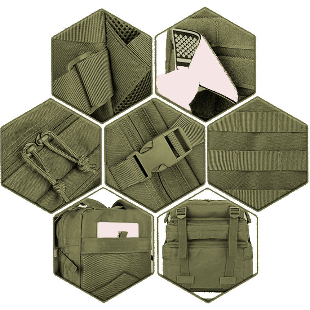 Рюкзак військового класу виготовлений з поліестеру 900D, тактичний рюкзак посилений і прошитий подвійним швом у всіх точках навантаження. Стійкий і міцний, а наше спеціальне покриття робить наш тренувальний рюкзак водонепроникним і захищеним від подряпин.