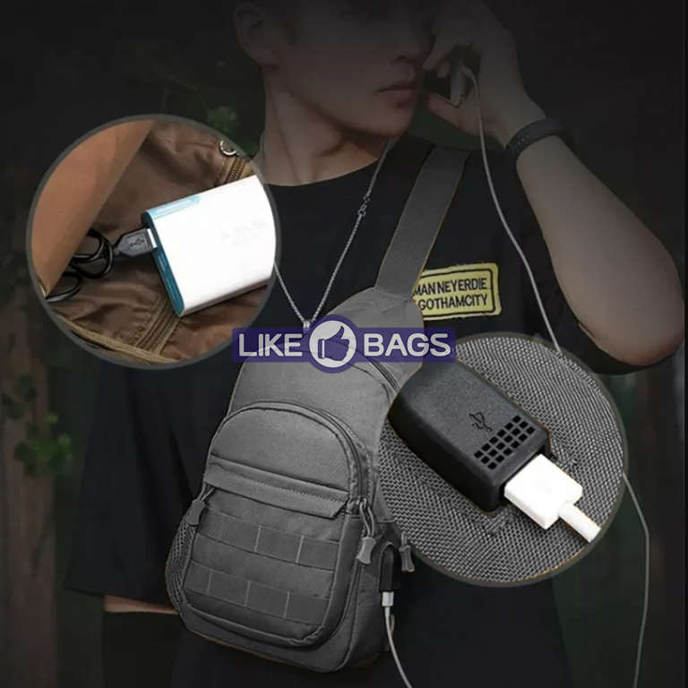 Збоку розміщена сітчаста кишеня відкритого типу — зручна для зберігання пляшки з водою чи інших предметів, які можуть знадобитися швидко. Окремої уваги заслуговує наявність вбудованого USB-порту, який дозволяє заряджати пристрої в дорозі, просто підключивши павербанк усередині сумки. Виготовлена з міцного та зносостійкого матеріалу, ця армійська сумка має привабливий вигляд, добре витримує щоденне навантаження та не втрачає форму навіть після тривалого використання.