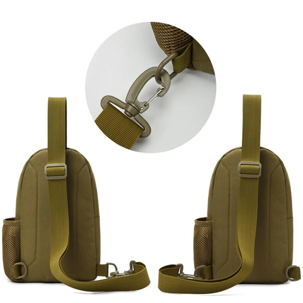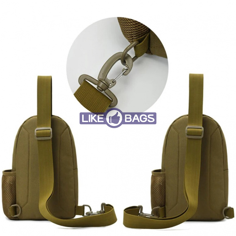 Збоку армійської сумки знаходиться відкрита сітчаста кишеня, ідеальна для невеликої пляшки з водою або термочашки, що забезпечує швидкий доступ до напоїв. Попри свої компактні розміри, ця військова сумка вміщує все потрібне, не обмежуючи при цьому рухів, що є критично важливим для активних людей.