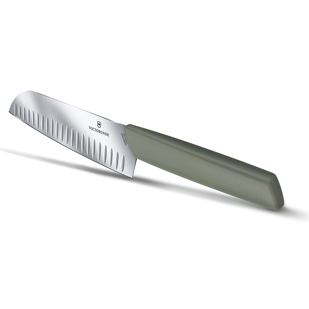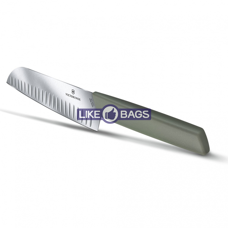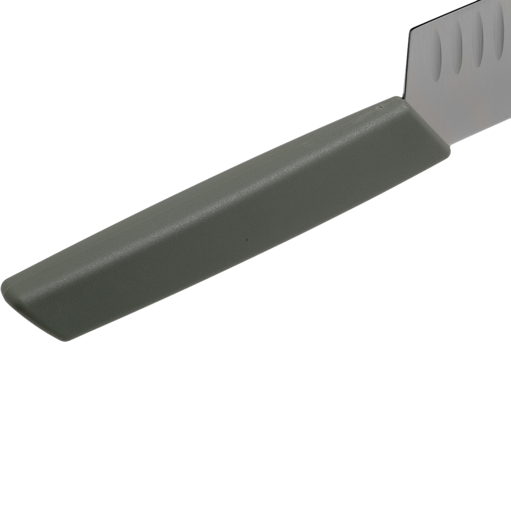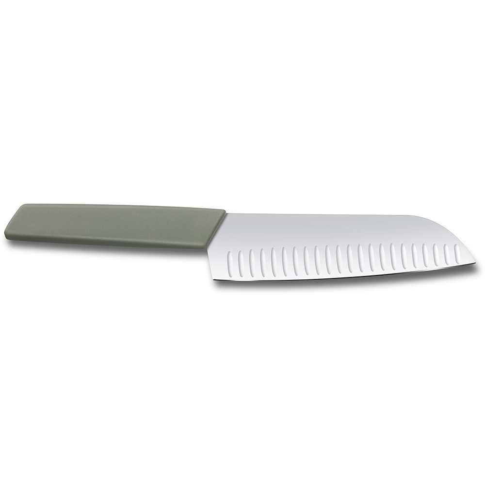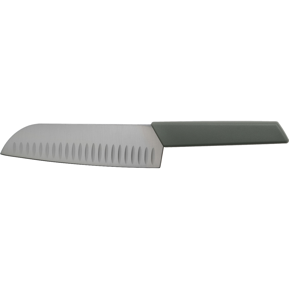 Сучасний ніж Santoku 17 см, отримав назву «ніж трьох переваг». І він відповідає цьому завдяки своїй здатності без зусиль розрізати м'ясо, фрукти та овочі.