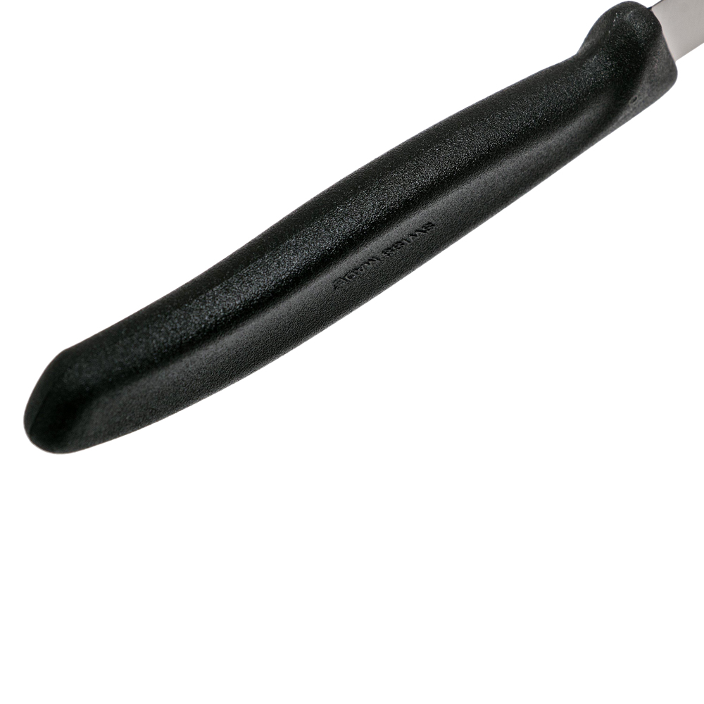 Овочевий ніж має рукоятку із поліаміду чорного кольору. Цей матеріал забезпечує відмінне зчеплення під час різання. Через невеликий вигин рукоятки леза також зручно тримати.