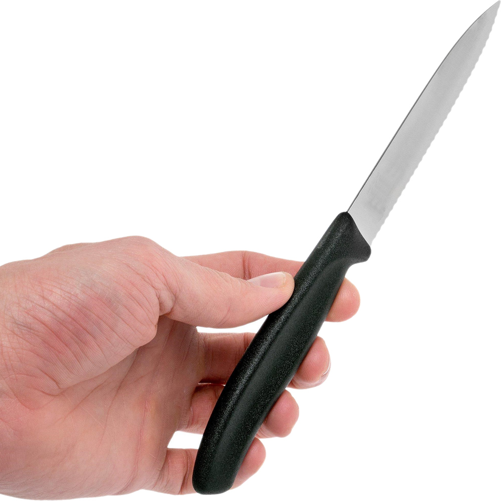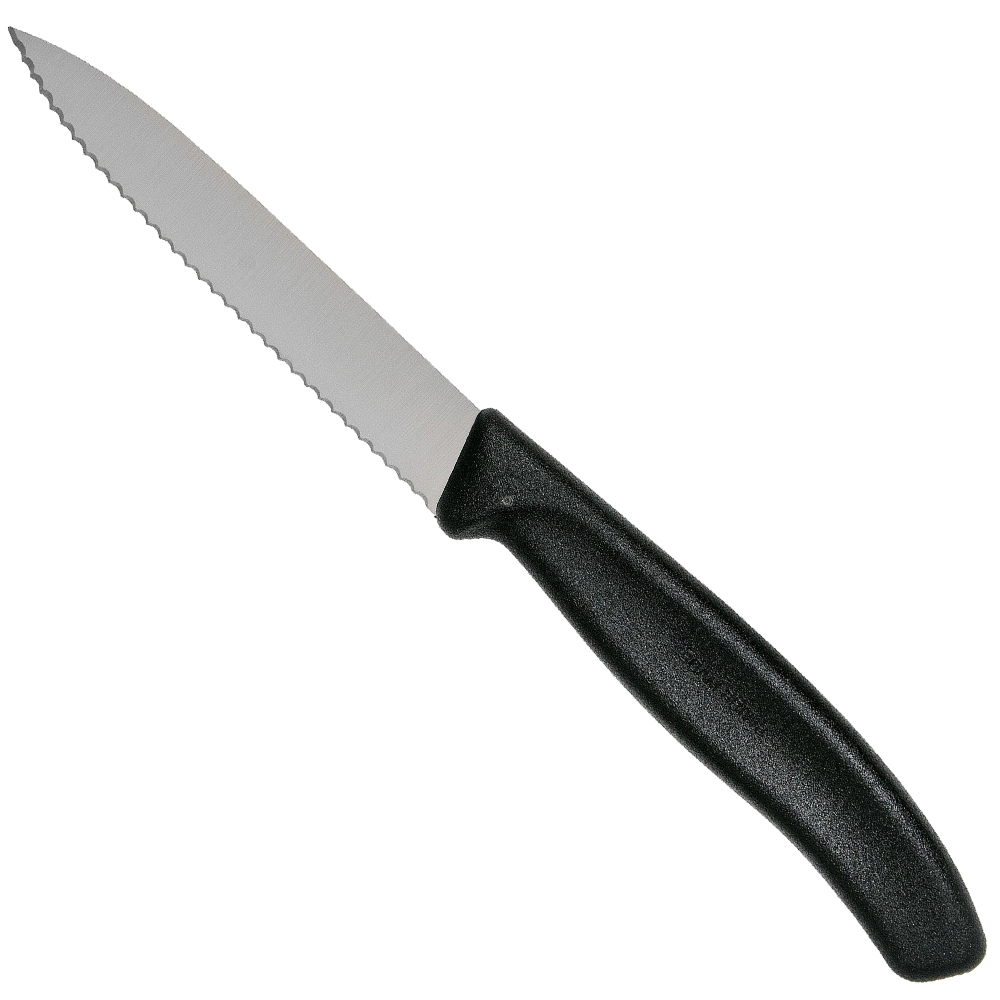 Овочевий ніж Victorinox SwissClassic чорного кольору універсальний у використанні на кухні та на столі. Завдяки зазубреному та тонкому надрізу нарізати та очистити овочі чи фрукти простіше простого!