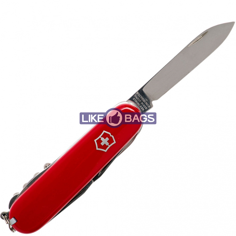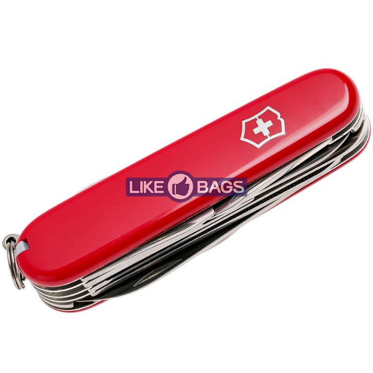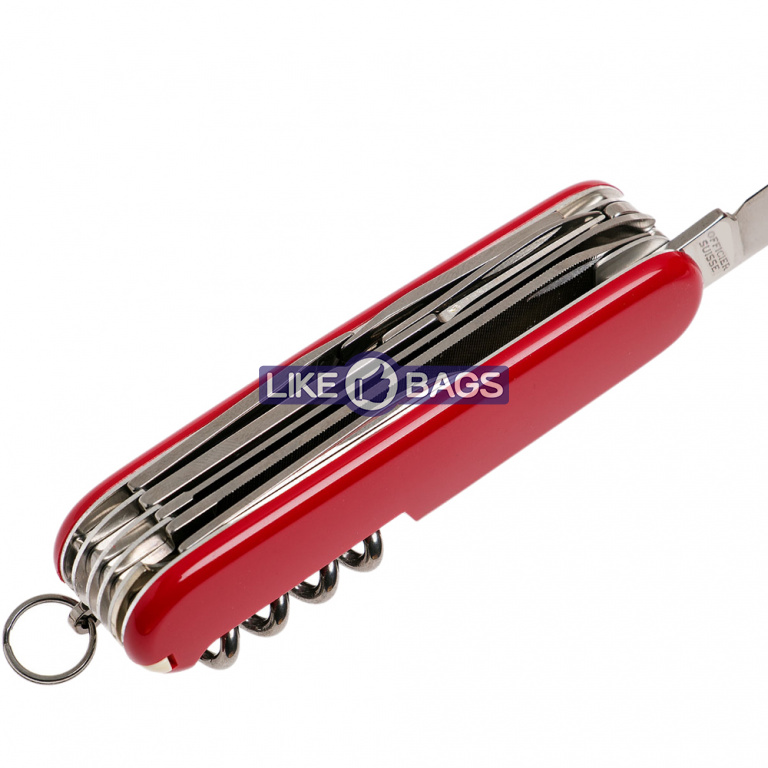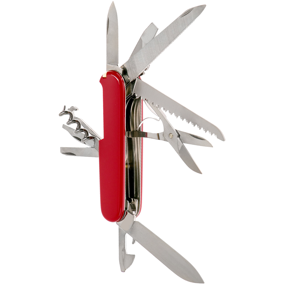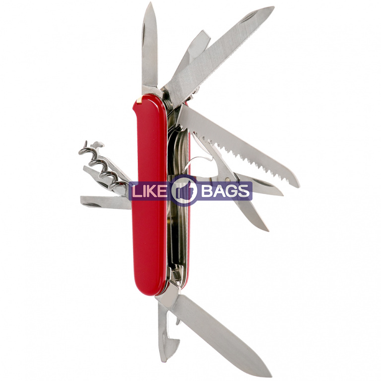 Функції інструменту: велике лезо + / зубочистка + / інструмент для зняття ізоляції + / інструмент для чищення нігтів + / консервний ніж + / мале лезо + / багатофункціональний гак + / напильник + / ножиці + / пляшка + / пила по дереву + / пила по металу + / пилка для нігтів + / пінцет + / плоска викрутка (велика) + / плоска викрутка (маленька) + / стаместка, скребок + / кільце страхування + / шило, кернер + / штопор +