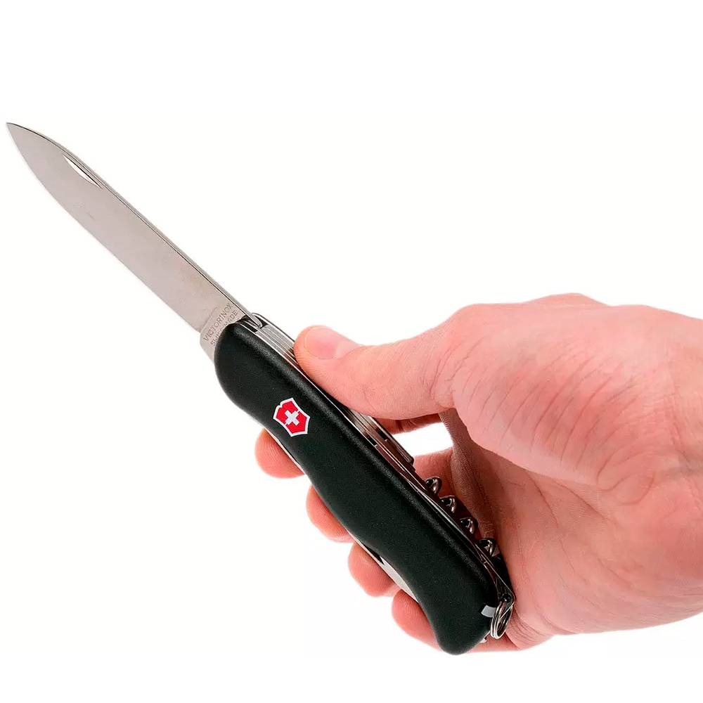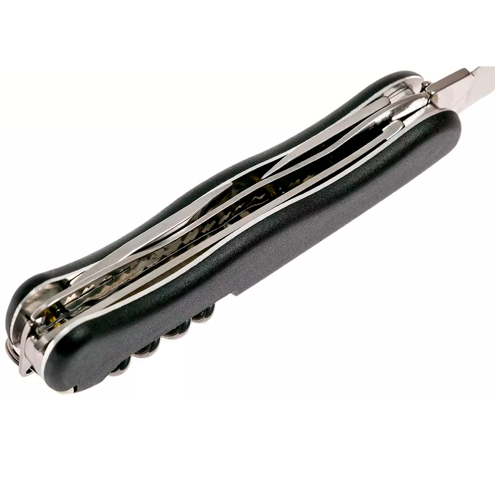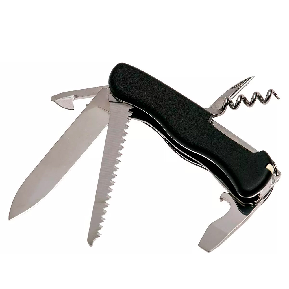 Victorinox Forester — это настоящий универсал, с не менее чем 6 складными инструментами и 12 функциями. Незаменим во многих ситуациях. Этот нож поставляется с: ножом, пилой по дереву, штопором, консервным ножом с небольшой отверткой 3 мм и инструментом для зачистки проводов, открывалкой для бутылок, шилом, кольцом для ключей, пинцетом и зубочисткой. Большой нож и открывалка для бутылок с отверткой оснащены замком. Таким образом, он никогда не закроется случайно! Большинство карманных ножей Victorinox окрашены в характерный красный цвет. Однако этот Victorinox Forester оснащен черными чешуйками. Таким образом, нож выглядит круто и прочно.