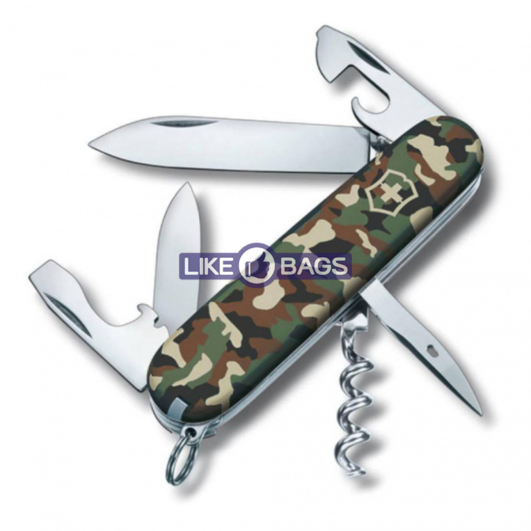 Функції інструменту: велике лезо + / зубочистка + / інструмент для зняття ізоляції + / консервний ніж + / мале лезо + / відкривалка для пляшок + / пінцет + / плоска викрутка (велика) + / плоска викрутка (маленька ) + / страхувальне кільце + / шило, кернер + / штопор +