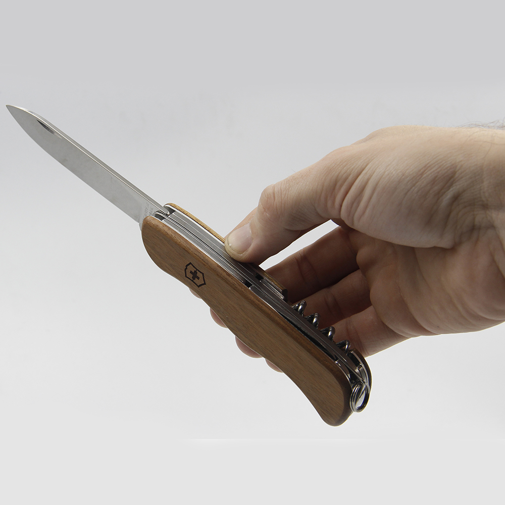 Моделі армійських ножів Вікторінокс з накладками з горіхового дерева мають дуже стильний зовнішній вигляд і наголошують на статусі їх власника.