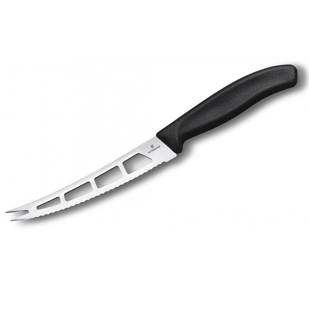 Кухонний ніж Victorinox SwissClassic для олії та сиру. Цей ніж із гострим краєм. серрейтор. унікальними перфораціями та вилкою. ідеальний зменшення тертя. З ним легко та зручно нарізати та розділяти. оскільки ніж забезпечений ергономічною ручкою для виконання своєї корисної функції. Цей ніж має особливості. які роблять його неповторним. Підійде до твердого сиру. cream-cheese та м'яких вершкових сортів.