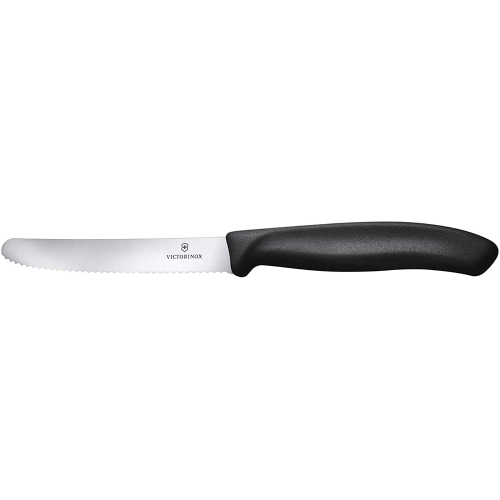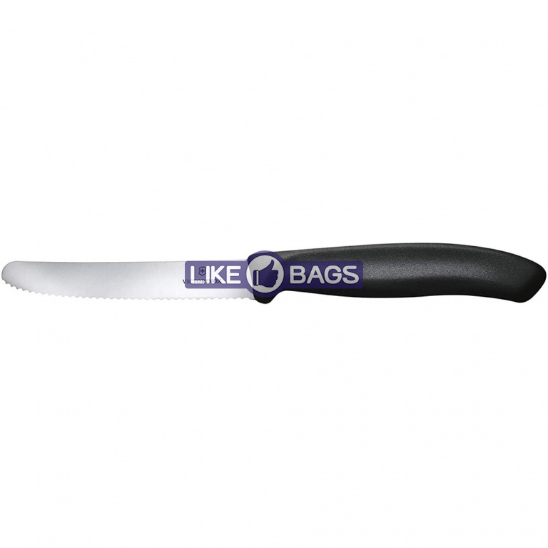 Ніж для кухні. Пластикова рукоять, лезо 11 см з високоякісної нержавіючої сталі, хвилеподібне (серрейторне) заточування, закруглений кінчик. Ідеально підходить для нарізки фруктів та овочів.