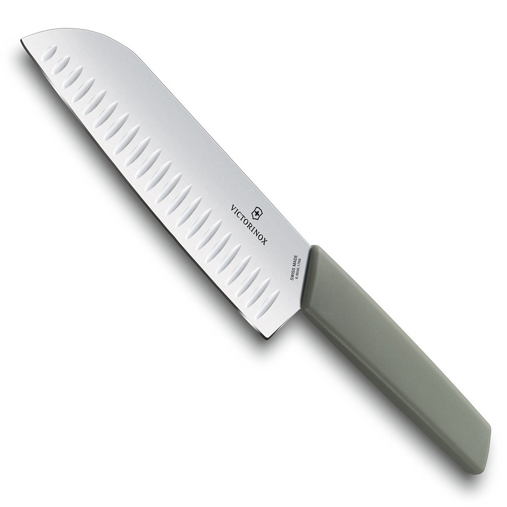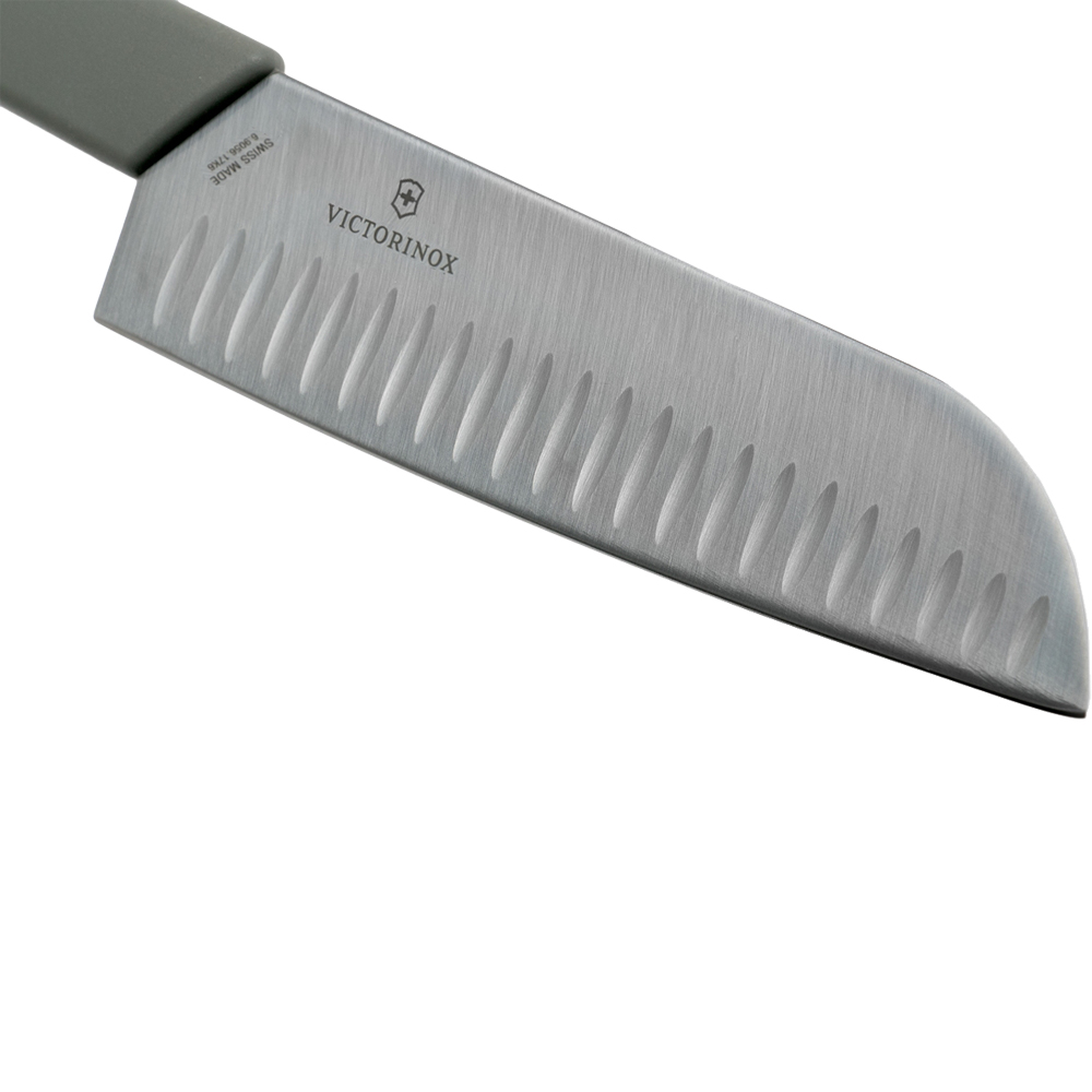 Сучасний ніж Santoku 17 см, отримав назву «ніж трьох переваг». І він відповідає цьому завдяки своїй здатності без зусиль розрізати м'ясо, фрукти та овочі.