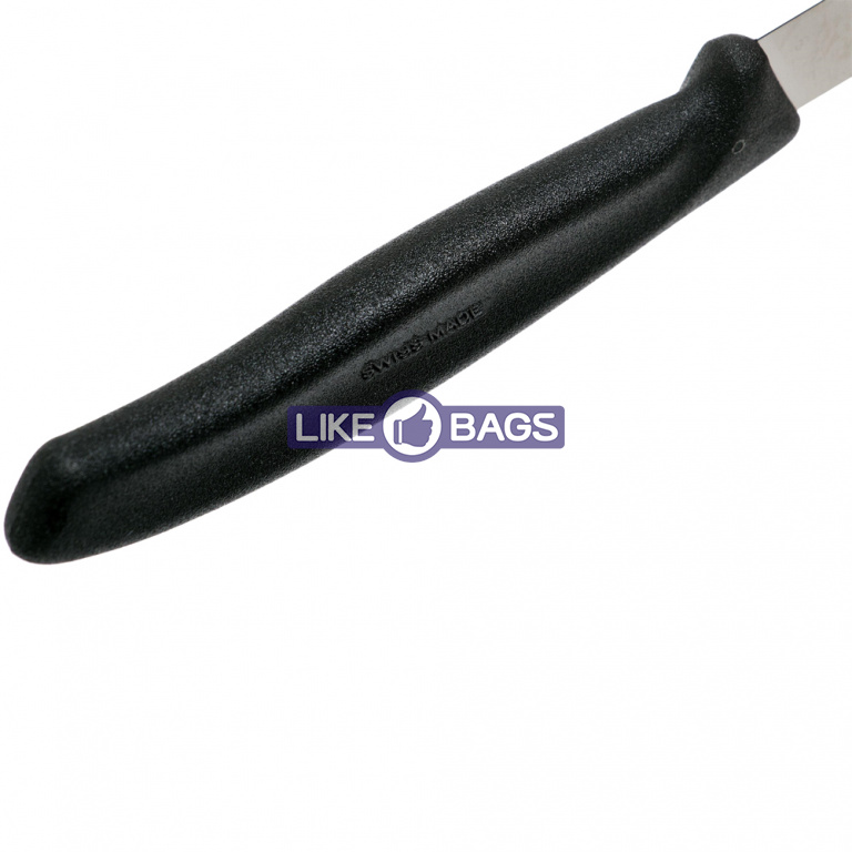 Овочевий ніж має рукоятку із поліаміду чорного кольору. Цей матеріал забезпечує відмінне зчеплення під час різання. Через невеликий вигин рукоятки леза також зручно тримати.