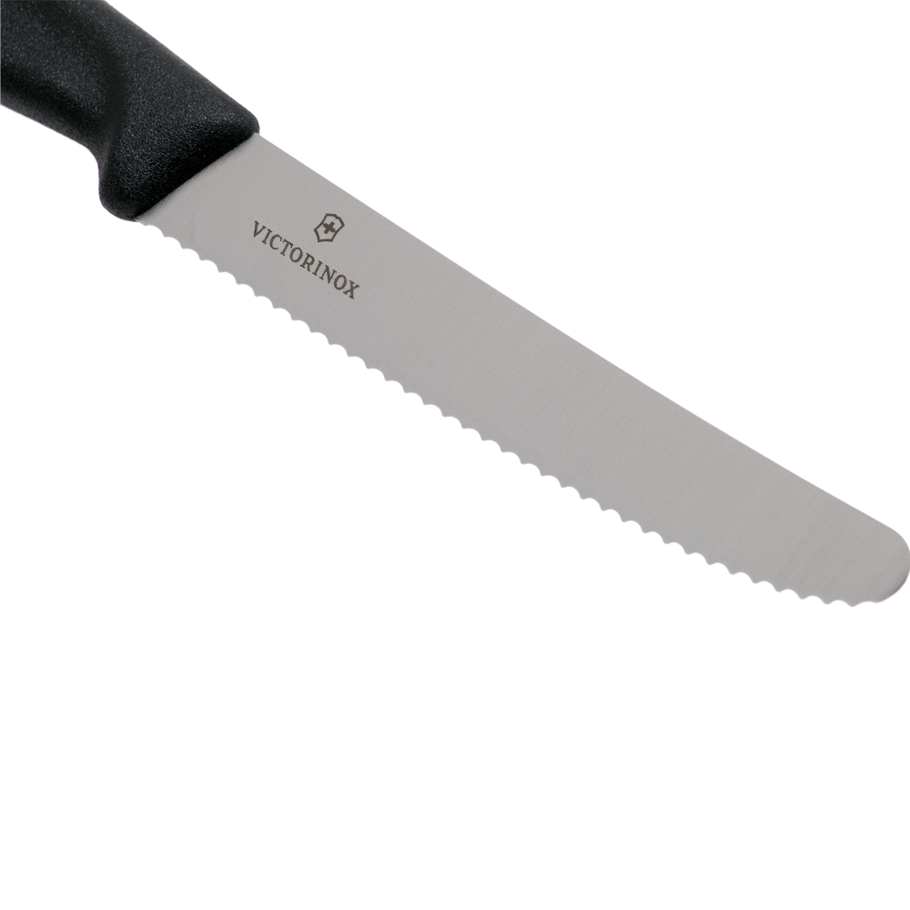 Зазубрене лезо виготовлене з нержавіючої сталі і при постачанні залишається гострим як бритва. Поєднання цього типу сталі та матеріалу, з якого виготовлена ручка, гарантує, що цей ніж придатний для миття в посудомийній машині.