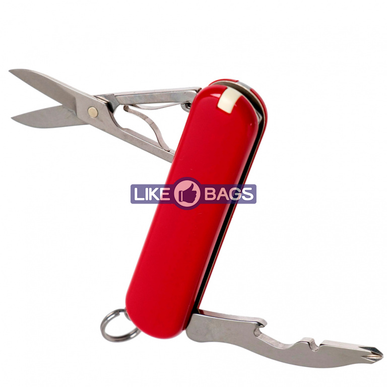 відкривалка для пляшок, кільце для ключів, ножиці, зубочистка, пінцет, інструмент для зачистки проводів, викрутка Philips