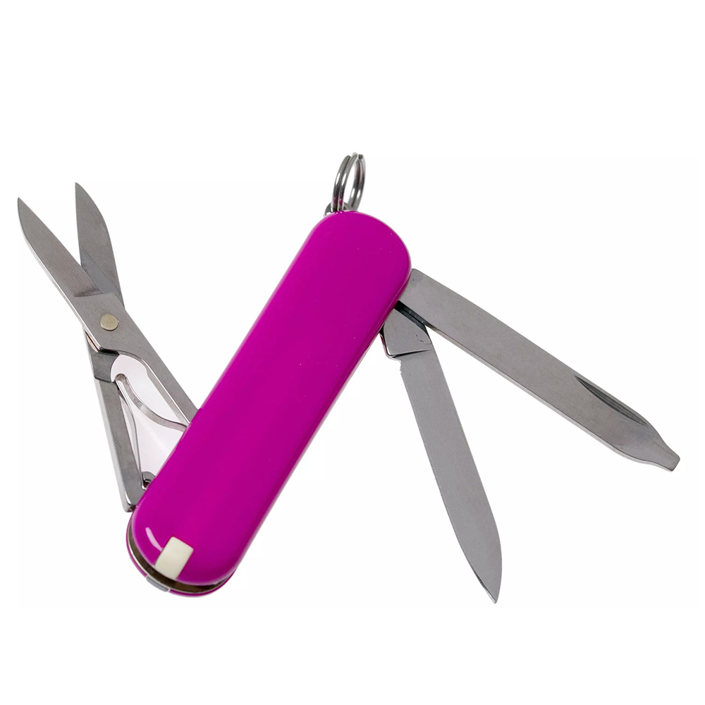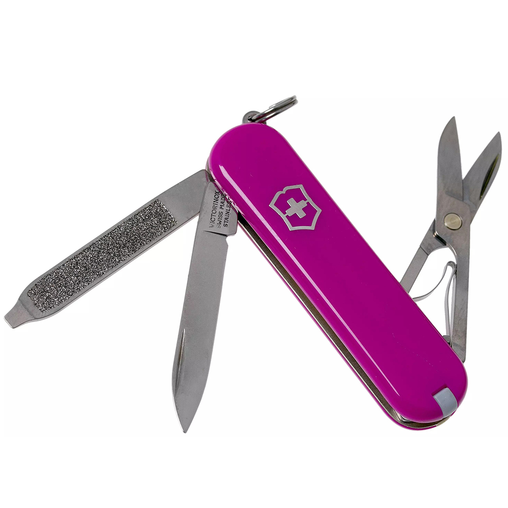 Victorinox Classic - найвідоміший і найменший кишеньковий ніж швейцарського бренду Victorinox. Classic був розроблений, щоб поєднувати у собі компактність та універсальність. Маючи довжину всього 58 мм (без урахування брелка), цей кишеньковий ніж є одним із найменших кишенькових ножів у нашому асортименті. Завдяки компактним розмірам та невеликій вазі цей кишеньковий ніж зручно брати із собою. Наприклад, на вашому зв'язуванні ключів з кільцем для ключів.