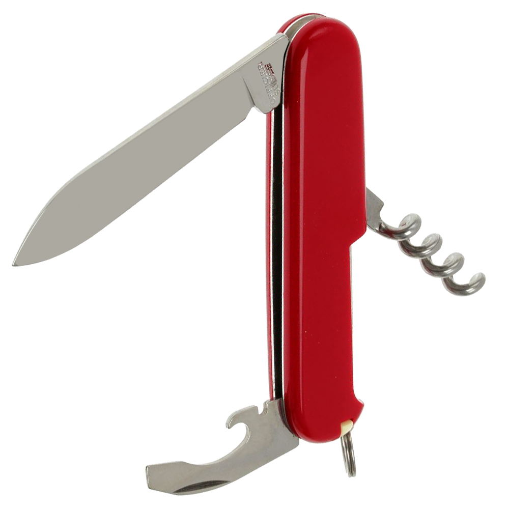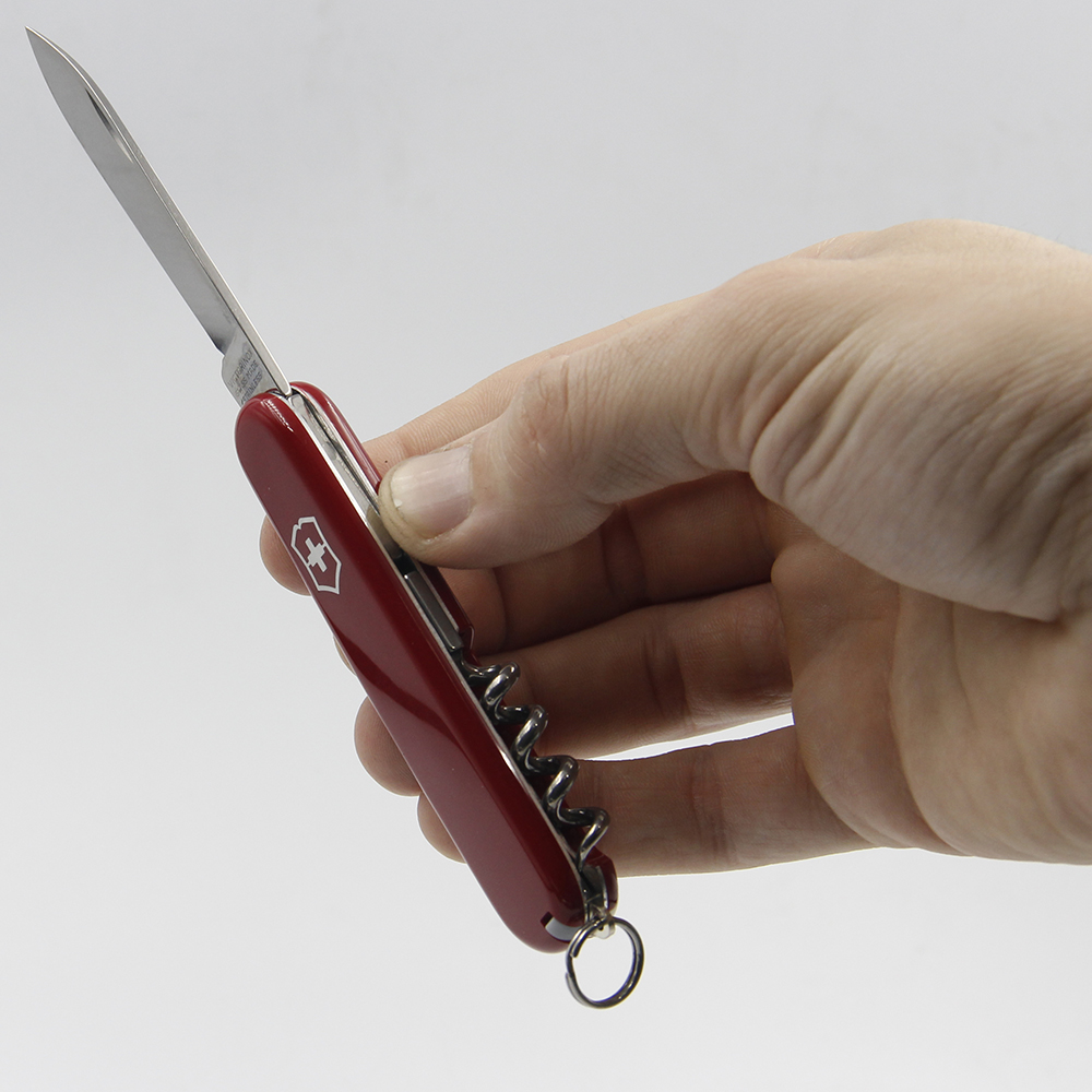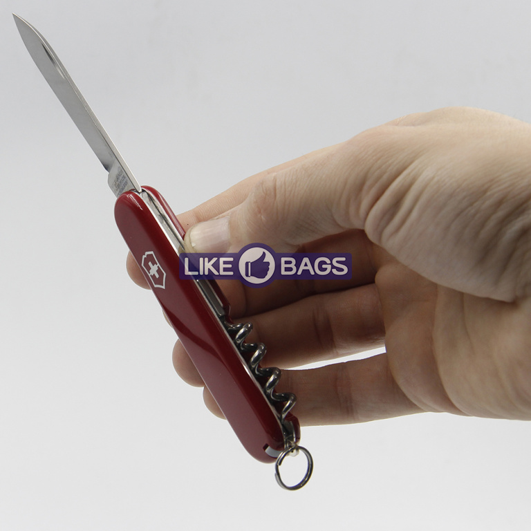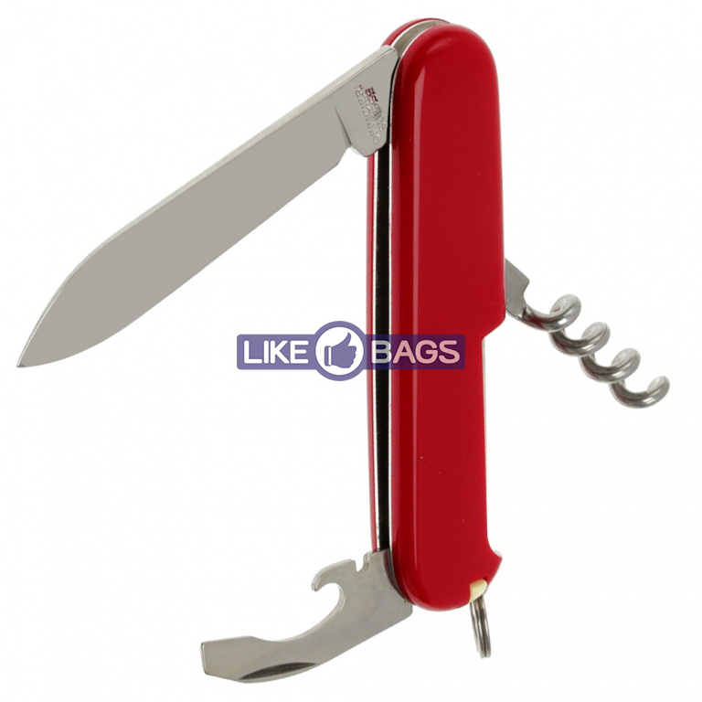 Функції інструменту: велике лезо + / зубочистка + / інструмент для зняття ізоляції + / консервний ніж + / відкривалка для пляшок + / пінцет + / плоска викрутка (маленька) + / кільце страхування + / штопор +