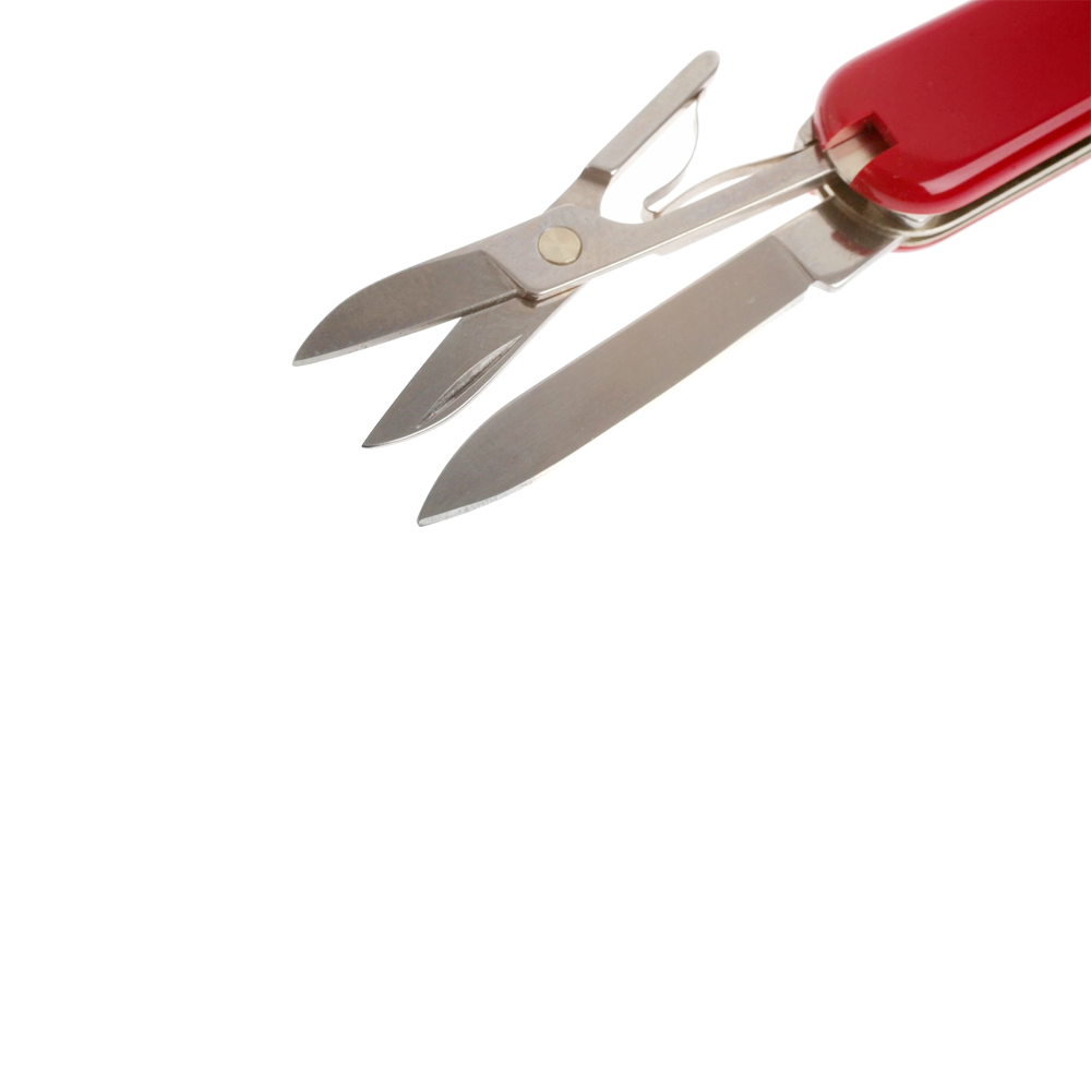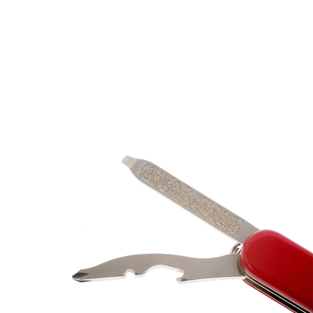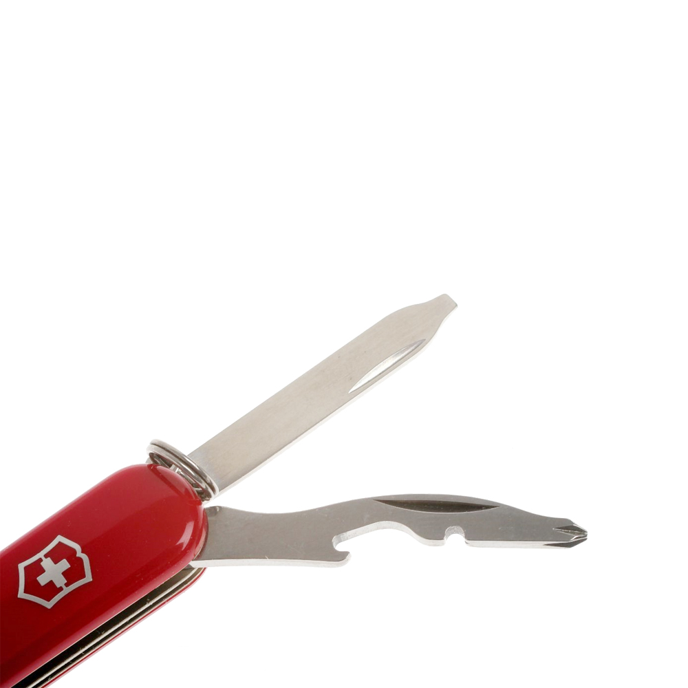 Функції інструменту: зубочистка + / інструмент для зняття ізоляції + / хрестова викрутка + / мале лезо + / ножиці + / відкривалка для пляшок + / пилка для нігтів + / пінцет + / плоска викрутка (маленька) + / Кільце страхування +
