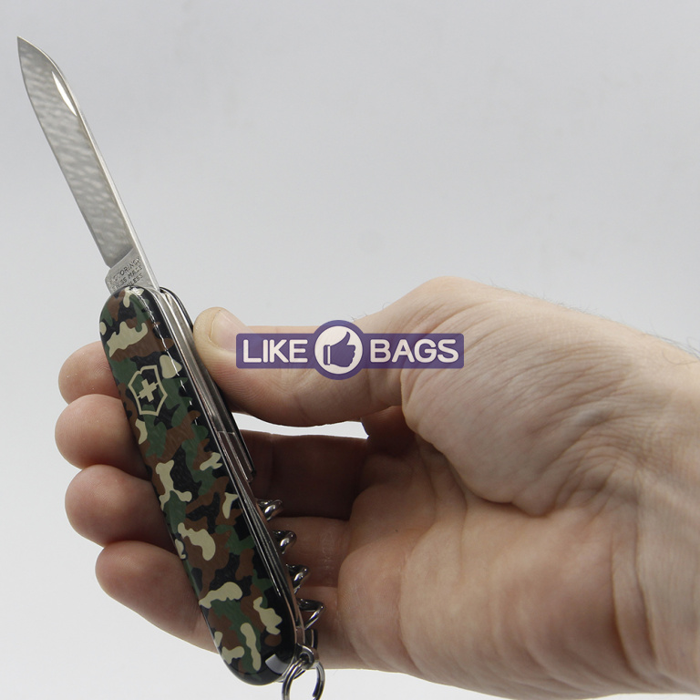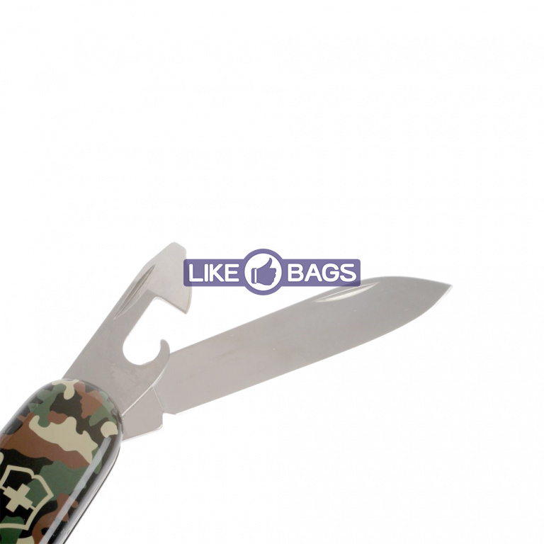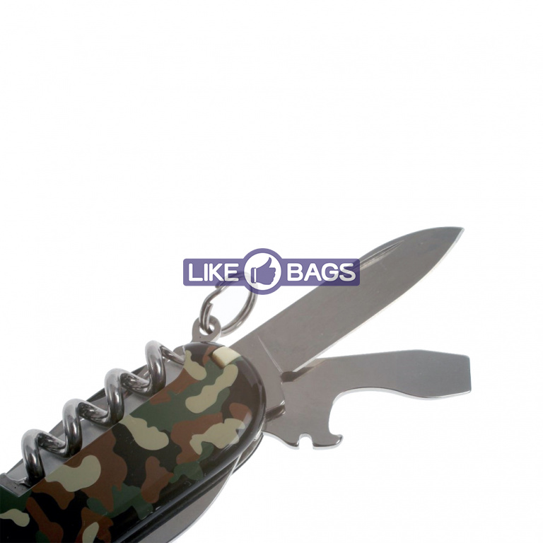 Функції інструменту: велике лезо + / зубочистка + / інструмент для зняття ізоляції + / консервний ніж + / мале лезо + / відкривалка для пляшок + / пінцет + / плоска викрутка (велика) + / плоска викрутка (маленька ) + / страхувальне кільце + / шило, кернер + / штопор +