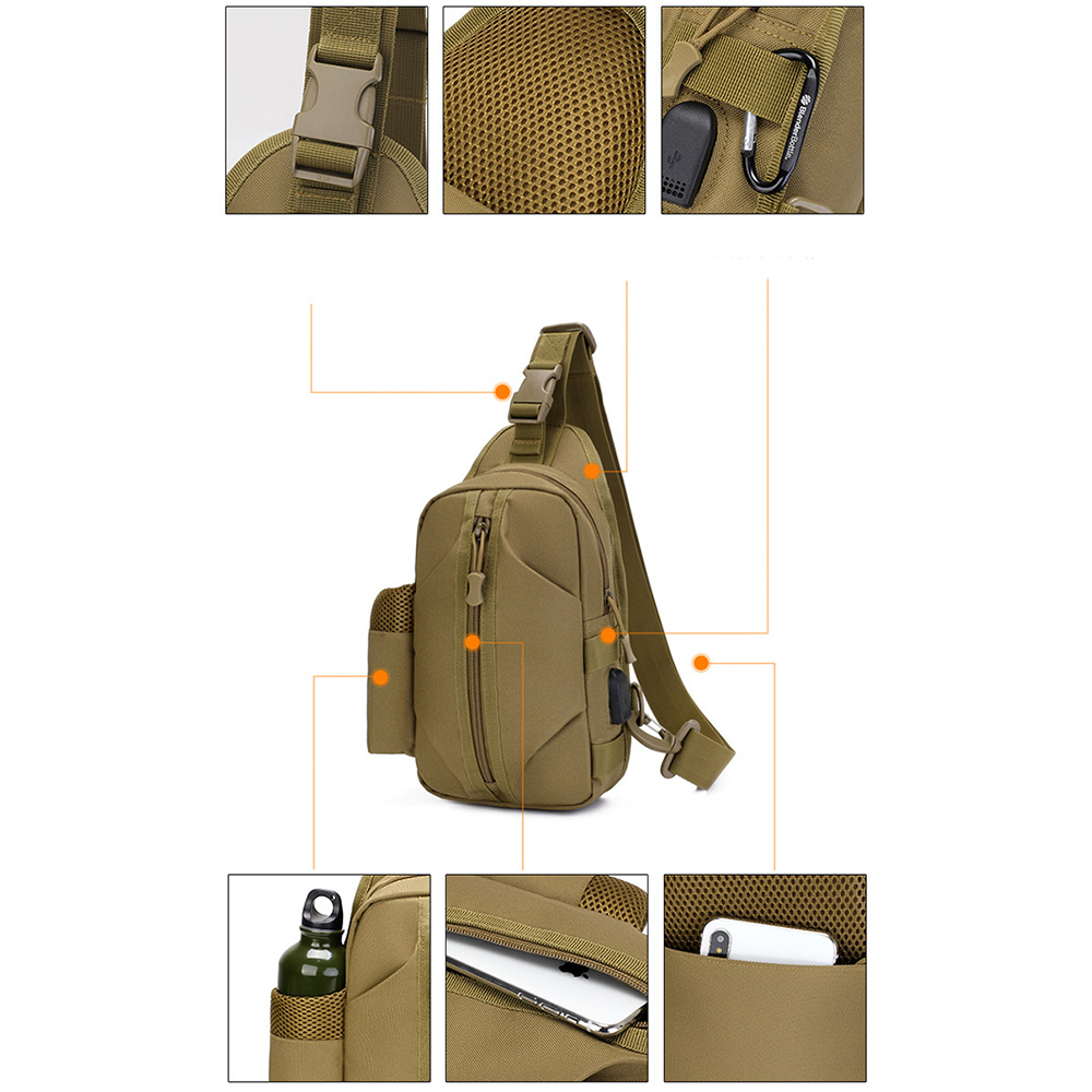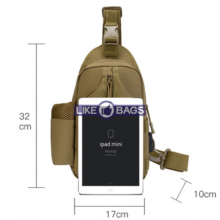 · Крім основного відділення, тактична сумка через плече має кілька додаткових кишень, зокрема окремий відсік для води.