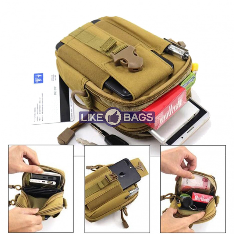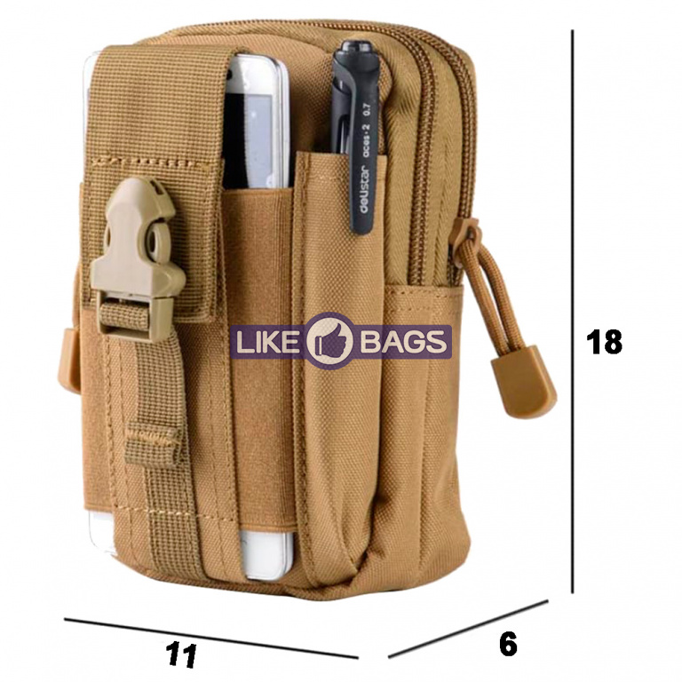 Тактична поясна сумка кольору койот — це надійний та багатофункціональний аксесуар, який поєднує в собі міцність та зручність у використанні. Цей аксесуар ідеально підходить для активного відпочинку, походів, а також для щоденного використання, забезпечуючи надійне зберігання ваших речей за будь-яких умов. Сумка оснащена двома основними відділеннями, що надають достатньо місця для зберігання ключових предметів, таких як смартфон, гаманець, документи чи інші необхідні речі. Внутрішні кишені на блискавці гарантують безпечне зберігання вмісту та швидкий доступ до нього у потрібний момент. На фронтальній частині сумки розташована кишеня з клапаном, спеціально призначена для телефону, що захистить ваш пристрій від ударів та подряпин. Поруч знаходиться кишеня для ручки або маркера, що дозволяє вам завжди мати під рукою інструменти для записів або позначок. На задній частині сумки передбачені міцні лямки для кріплення до системи MOLLE, що дозволяє використовувати її в поєднанні з іншою тактичною екіпіровкою. Ці лямки також дають можливість носити сумку на поясі, звільняючи ваші руки та забезпечуючи зручний доступ до речей навіть у русі. Колір койот робить сумку універсальною з точки зору маскування, дозволяючи їй злитися з природним оточенням у лісі або на відкритій місцевості. Цей відтінок також виглядає стильно та доречно у міському середовищі, підкреслюючи вашу прихильність до практичних і довговічних речей. Сумка виготовлена із зносостійких матеріалів, що забезпечують її довговічність та захист від несприятливих зовнішніх факторів. Якісна фурнітура та надійні шви гарантують, що сумка витримає інтенсивне використання та прослужить вам багато років. Ця невелика поясна сумка кольору койот стане вашим незамінним супутником у будь-яких ситуаціях, допомагаючи підтримувати порядок та завжди мати під рукою найнеобхідніші речі.