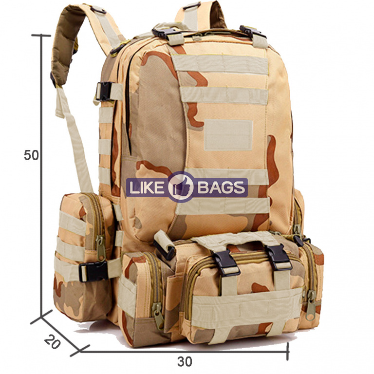 По-справжньому універсальний рюкзак зі знімними кишенями та поясною сумкою. Тактичний рюкзак пісочний камуфляж Victory був створений для використання в армії, походах, подорожах, полюванні та інших цілях на свіжому повітрі.