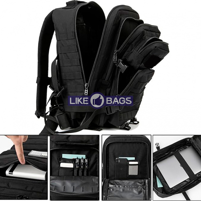 Система лямок рюкзака Molle спереду та з боків, призначена для використання в поєднанні з іншим спорядженням, ви можете прикріпити додаткові сумки або спорядження як тактичний рюкзак.