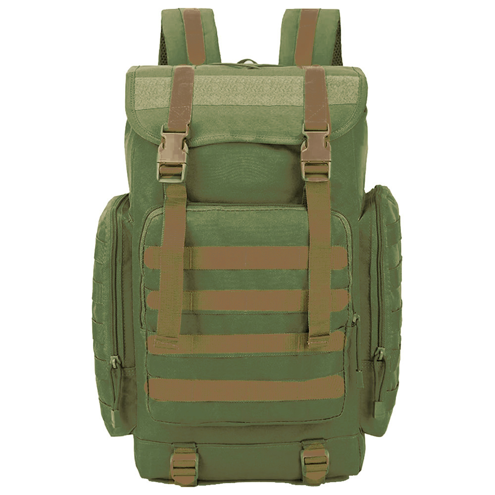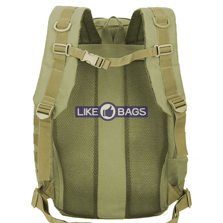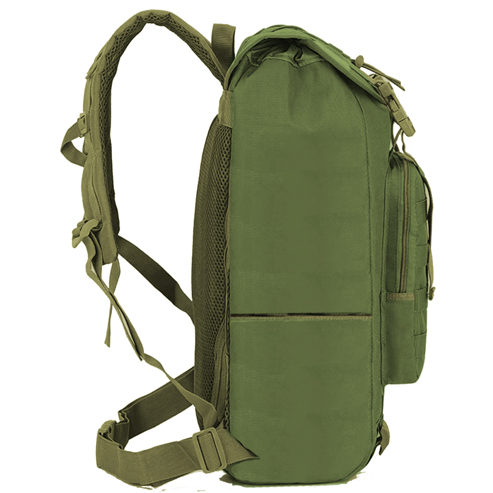 Рюкзак виготовлений з міцного матеріалу, стійкого до зношування та впливу вологи, що забезпечує довгий термін служби та захист вмісту від несприятливих умов. Колір олива дозволяє рюкзаку органічно вписуватися в природне оточення, що особливо важливо для завдань, пов'язаних з маскуванням та тактичними операціями.