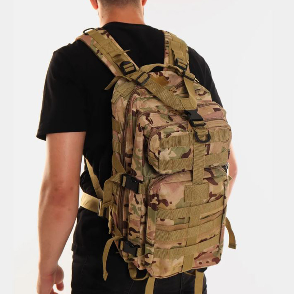 Тактичний рюкзак в камуфляжному кольорі мультикам — це чудовий вибір для тих, хто шукає компактне, але функціональне рішення для активного способу життя. Цей рюкзак розроблений з урахуванням потреб як професіоналів, так і любителів активного відпочинку, забезпечуючи максимальну зручність і надійність у будь-яких умовах.