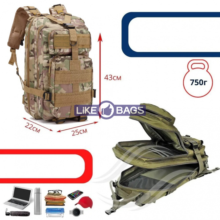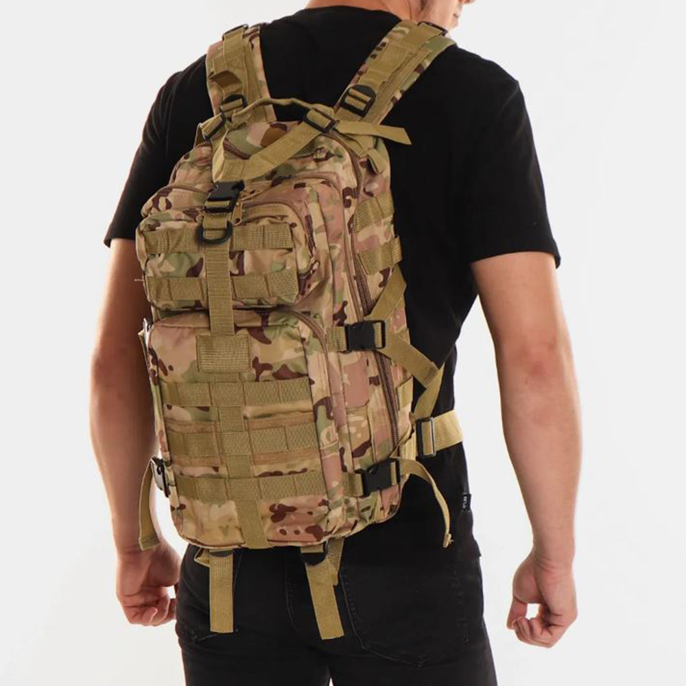 Тактичний рюкзак в камуфляжному кольорі мультикам — це чудовий вибір для тих, хто шукає компактне, але функціональне рішення для активного способу життя. Цей рюкзак розроблений з урахуванням потреб як професіоналів, так і любителів активного відпочинку, забезпечуючи максимальну зручність і надійність у будь-яких умовах.